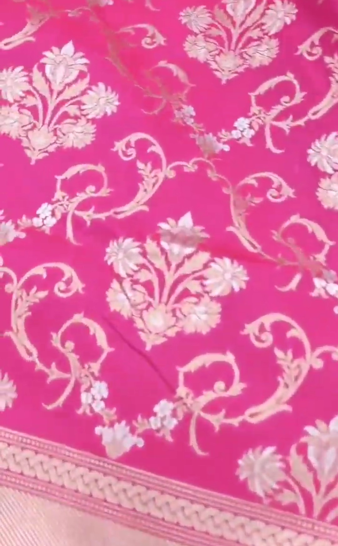 Dark Pink Banarasi Semi Katan Silk Tanchoi Brocade Saree