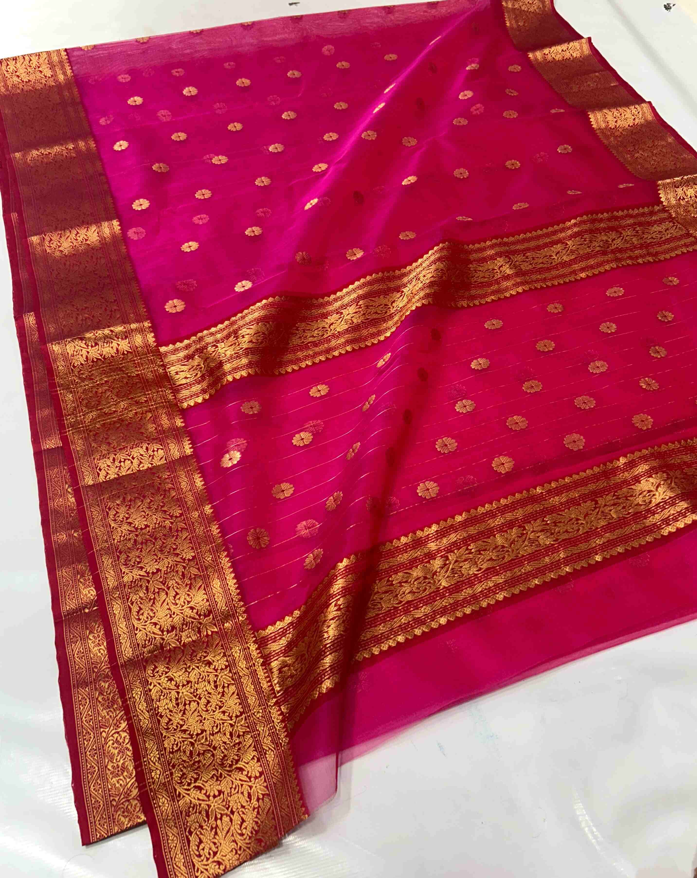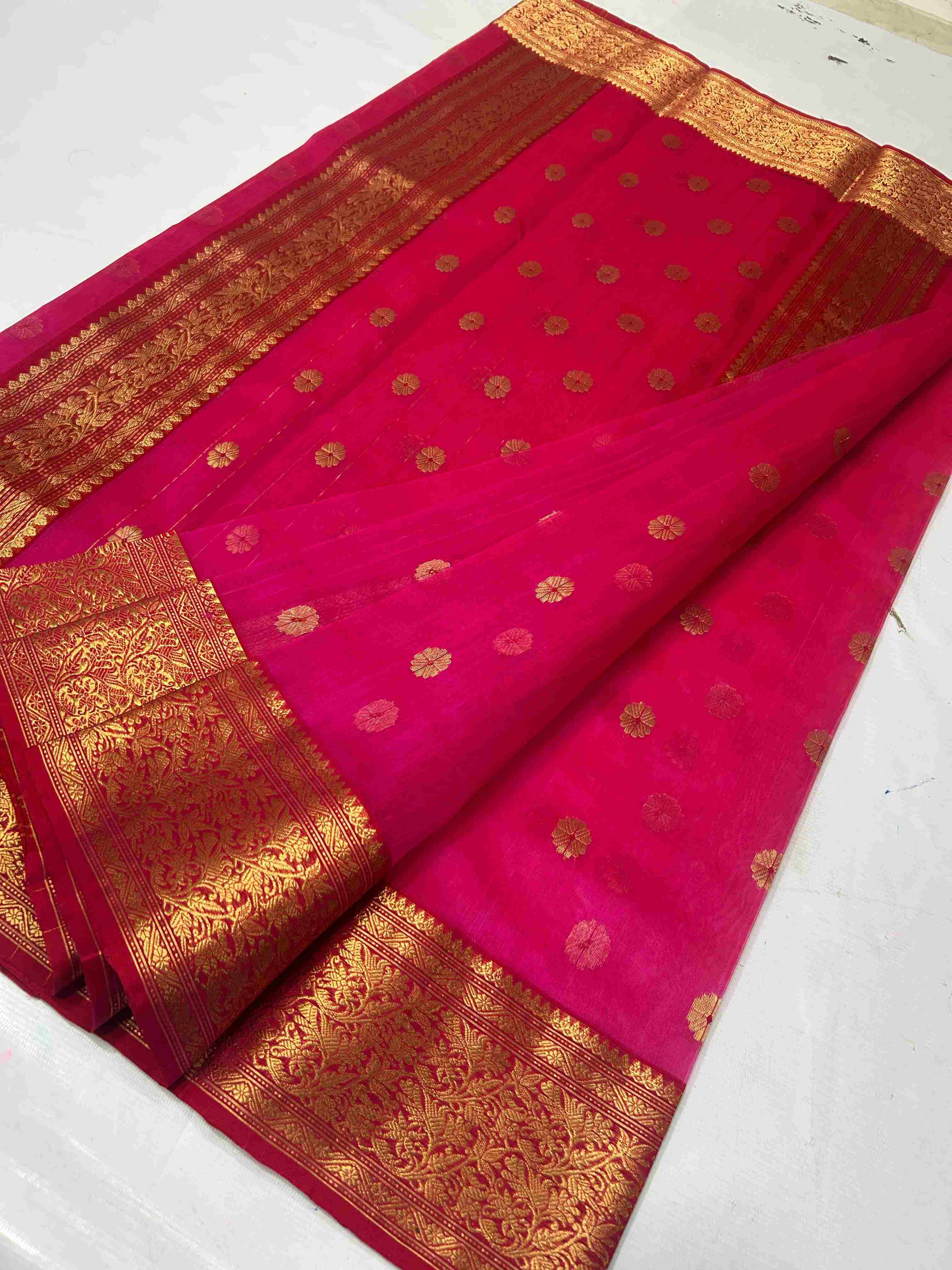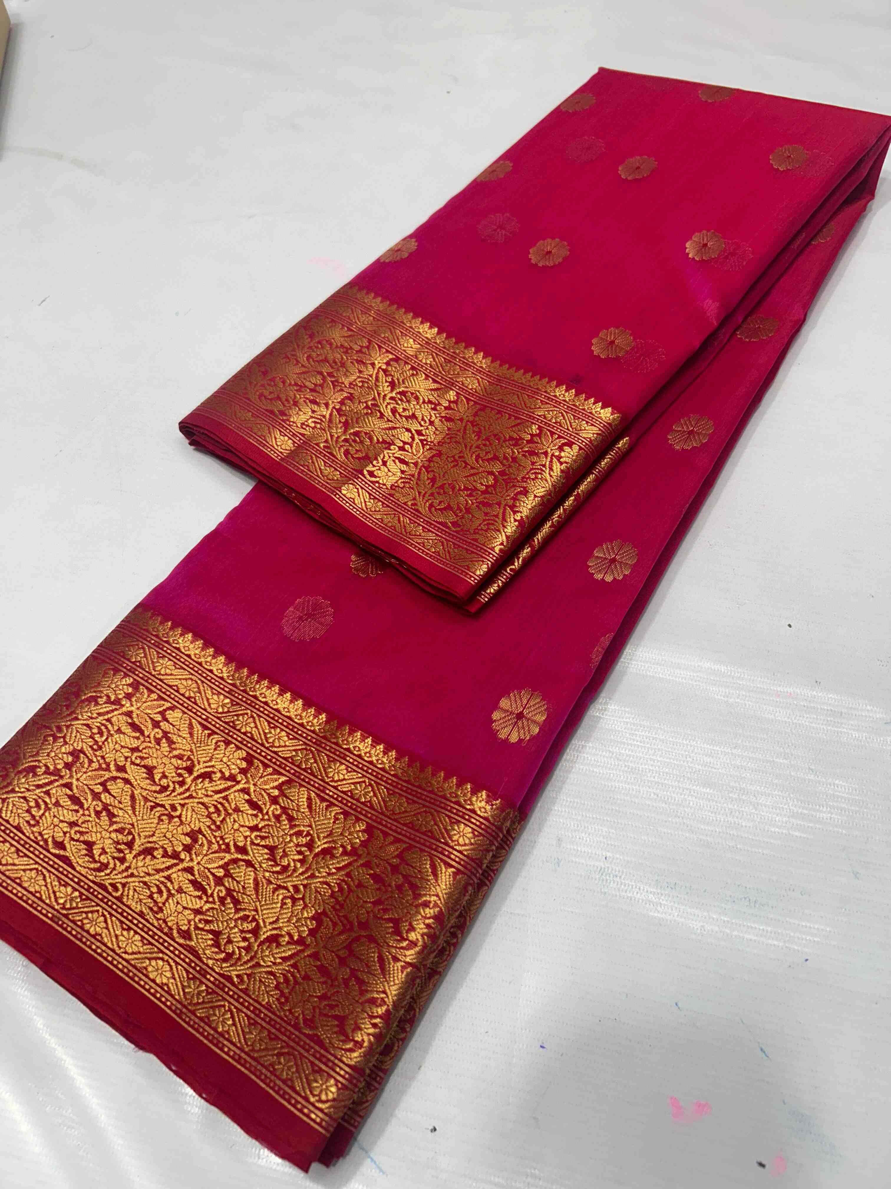 Dark Pink Chanderi Handloom Katan Silk Saree