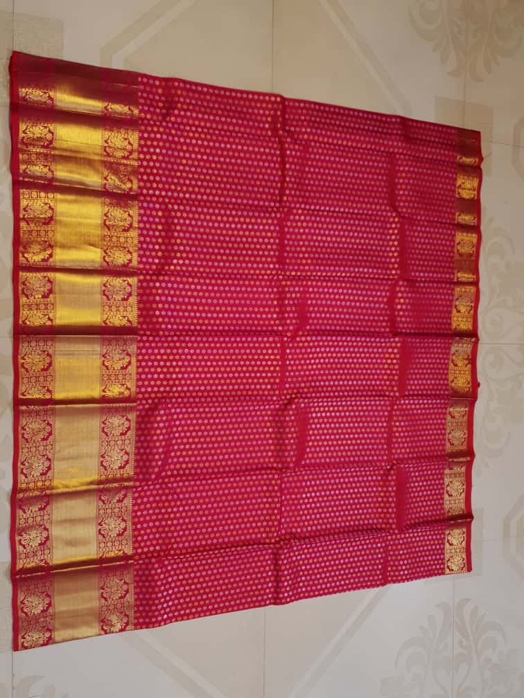 Hot Pink Kanchipuram Handloom 2G Gold Bridal Silk Saree