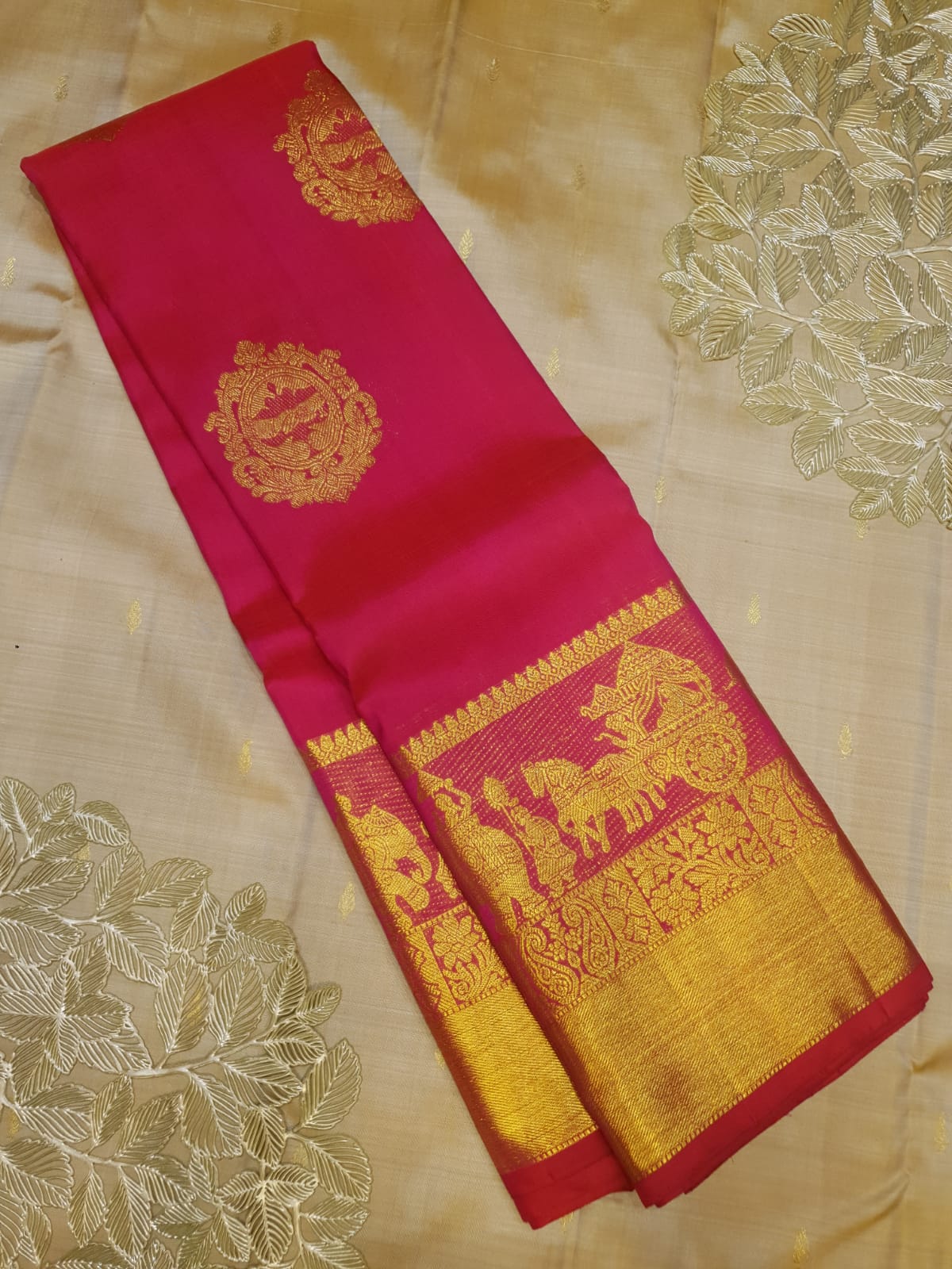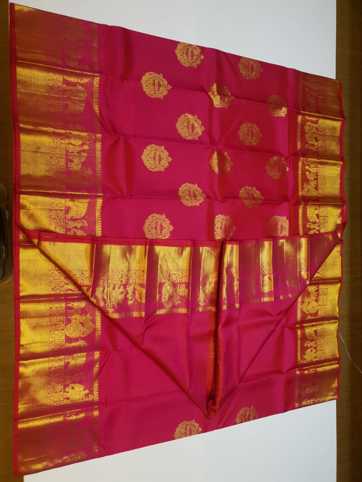Hot Pink Kanchipuram Handloom 2G Gold Pattu Silk Saree