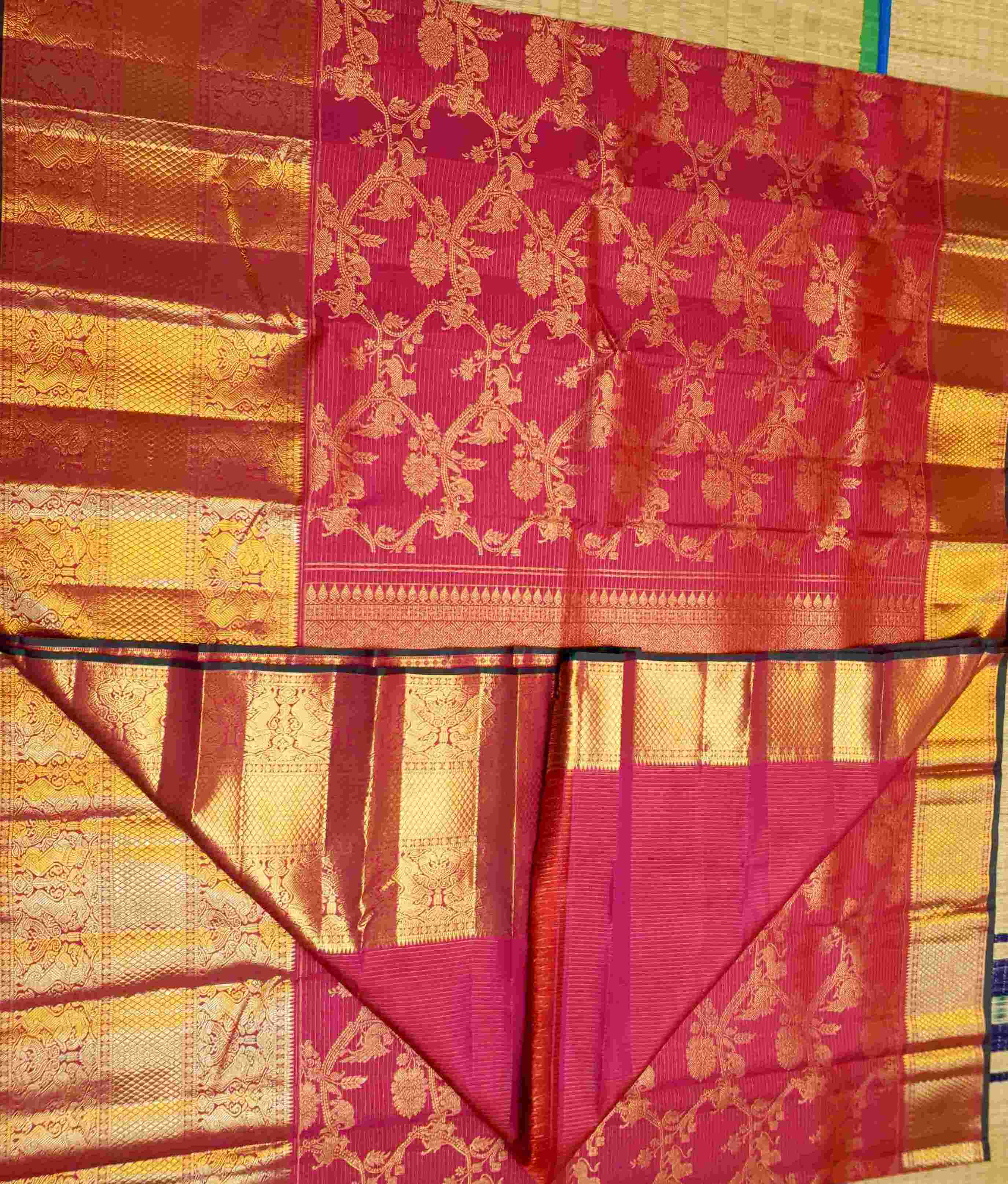 Hot Pink Kanchipuram Handloom 2G Gold Pattu Silk Saree
