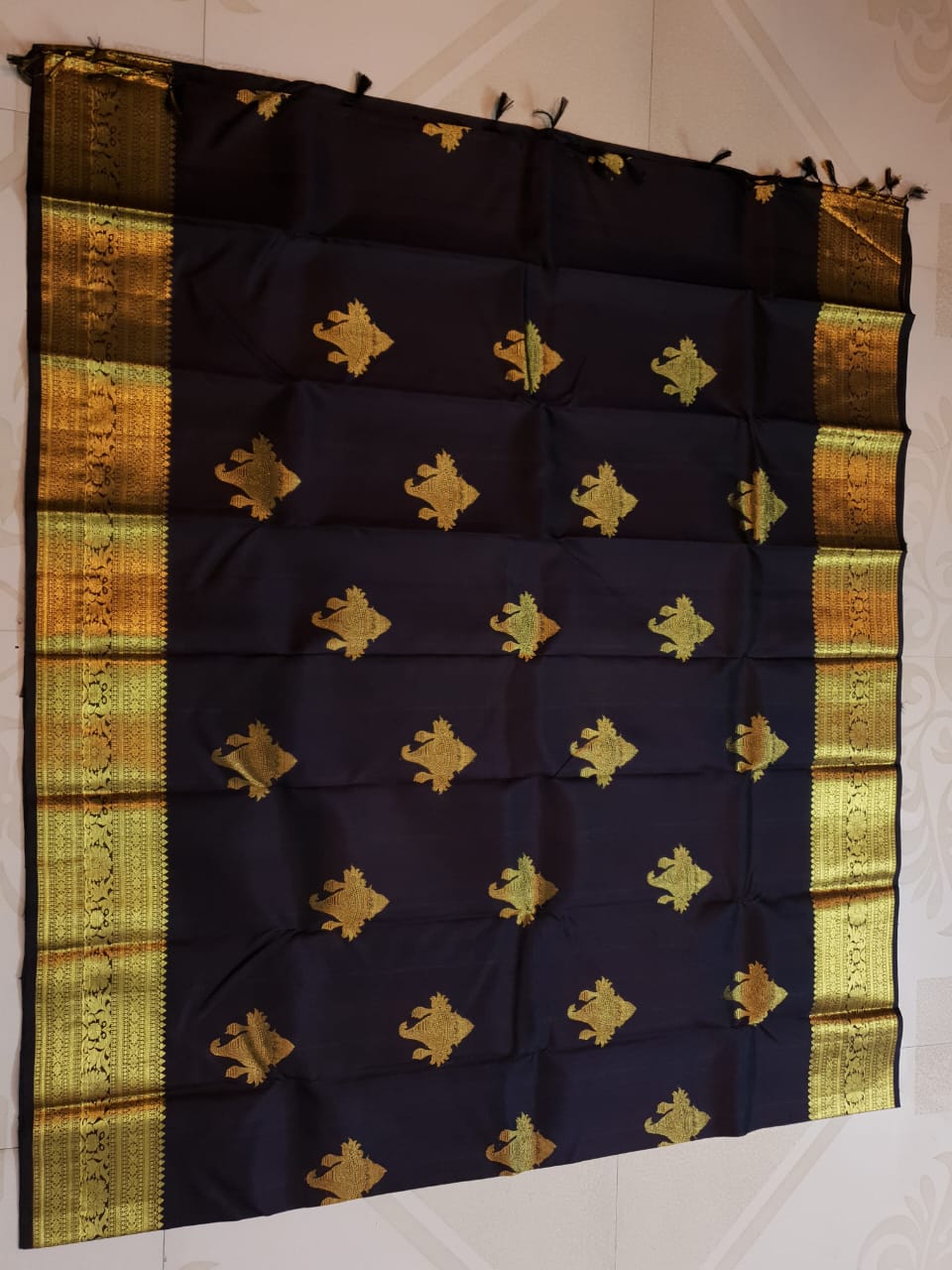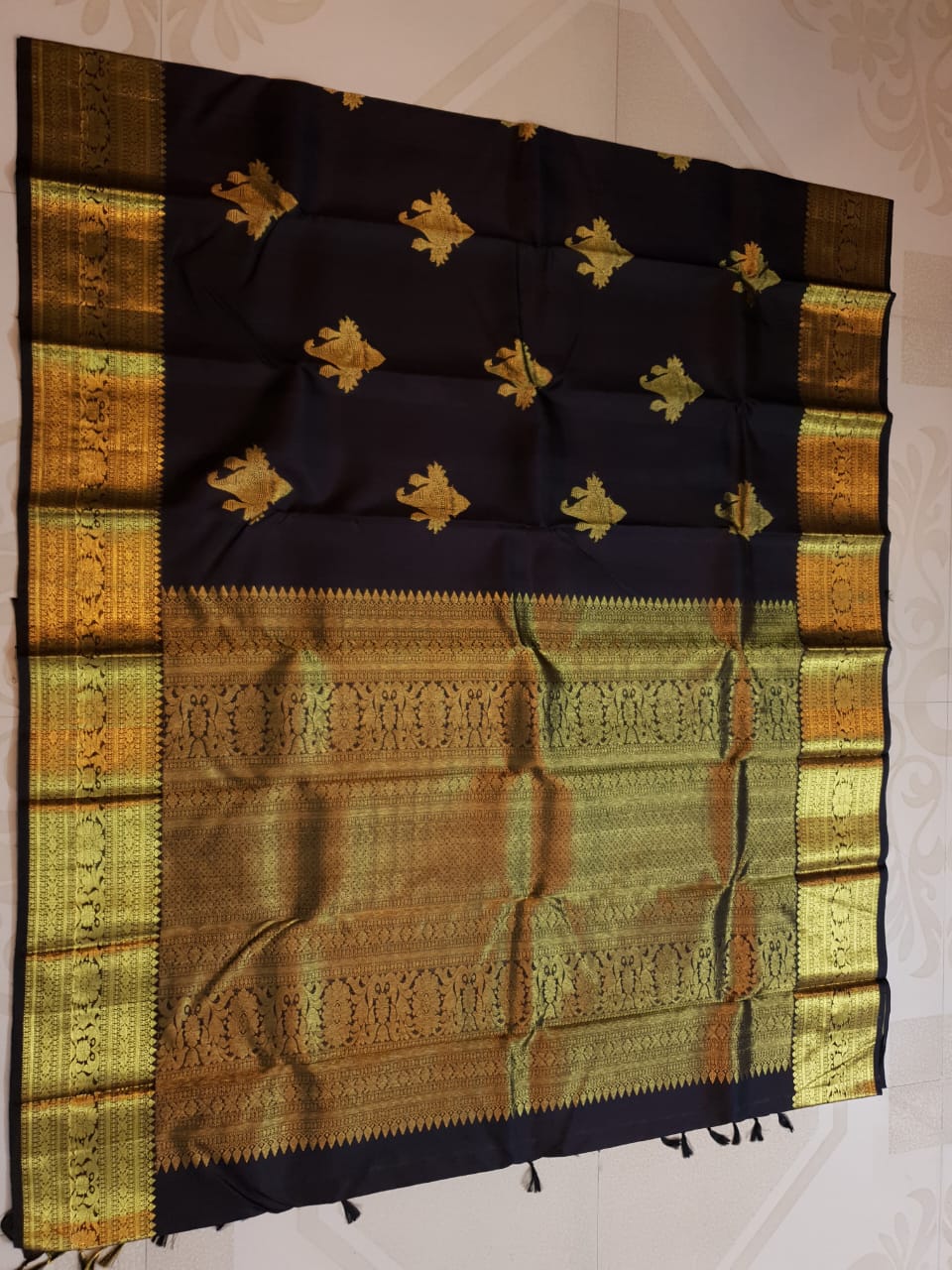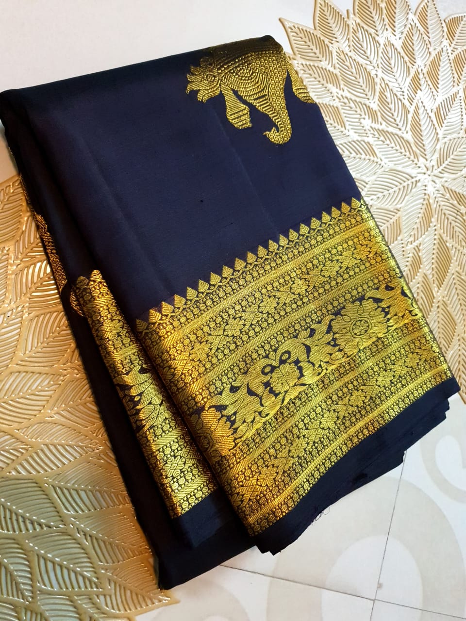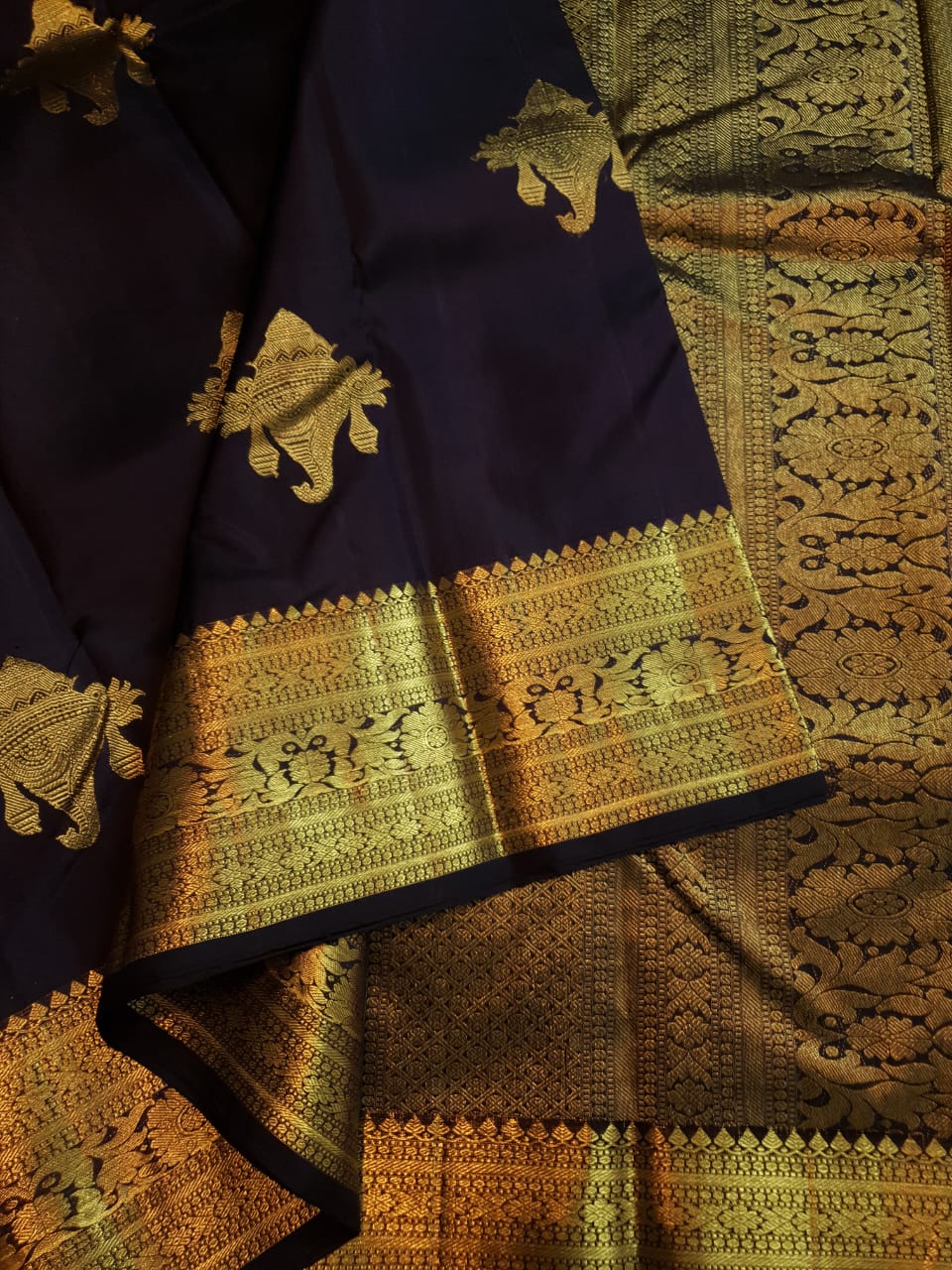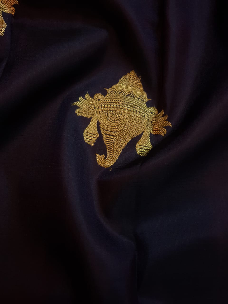 Darkest Purple Kanchipuram Handloom 2G Gold Pattu Silk Saree