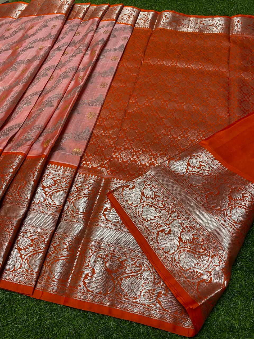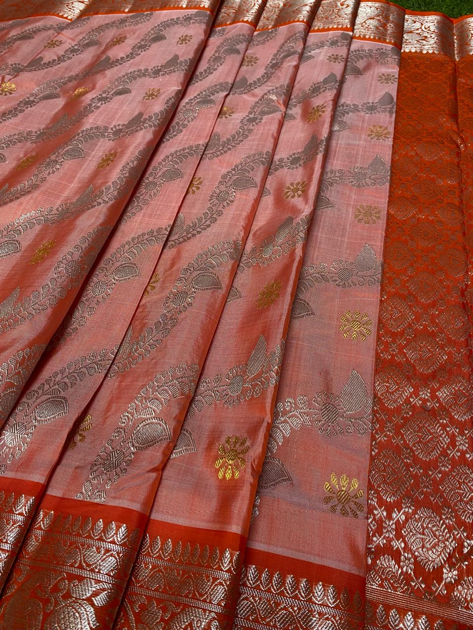 Dual Tone Coral Venkatagiri Handloom Pattu Silk Saree
