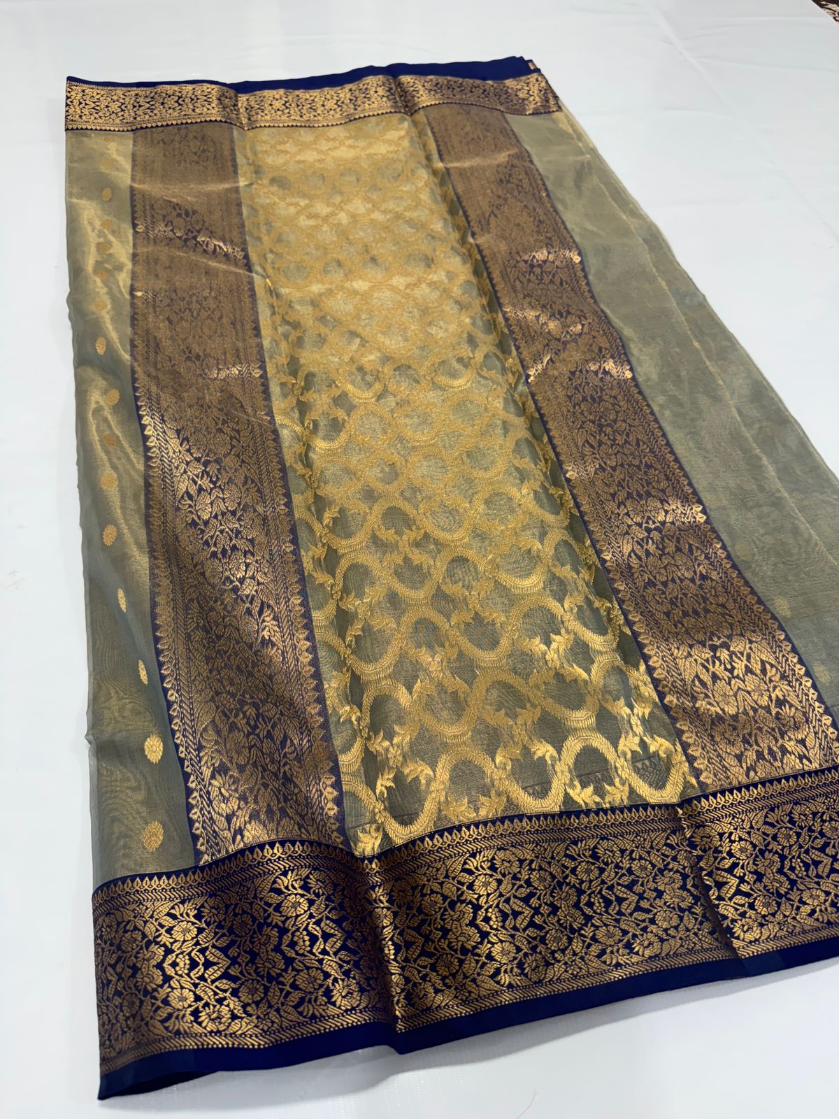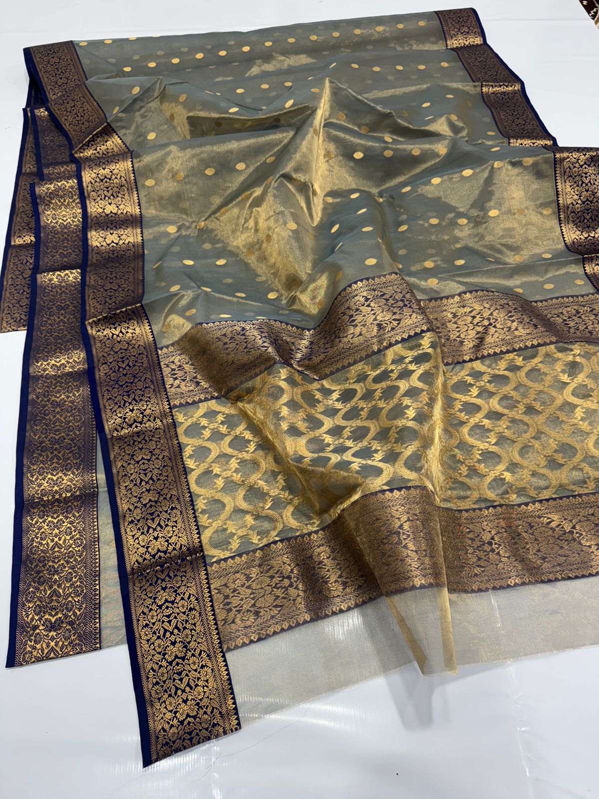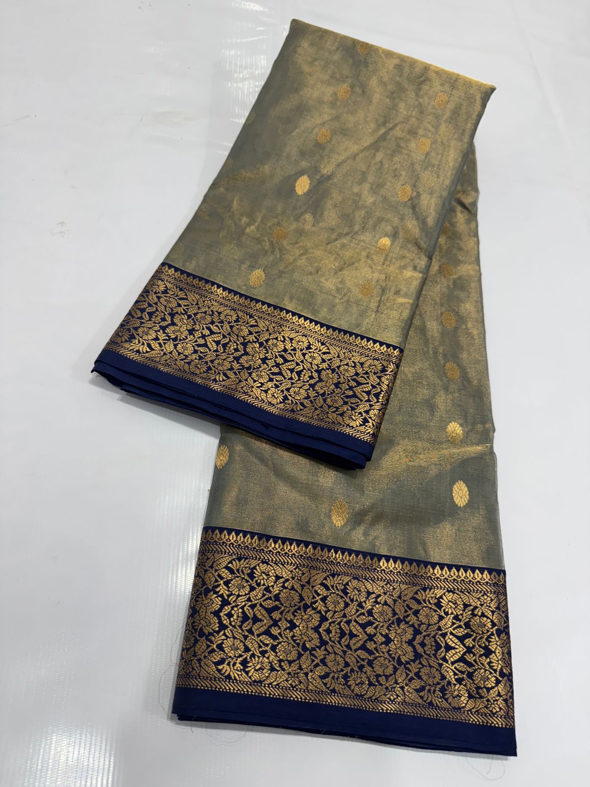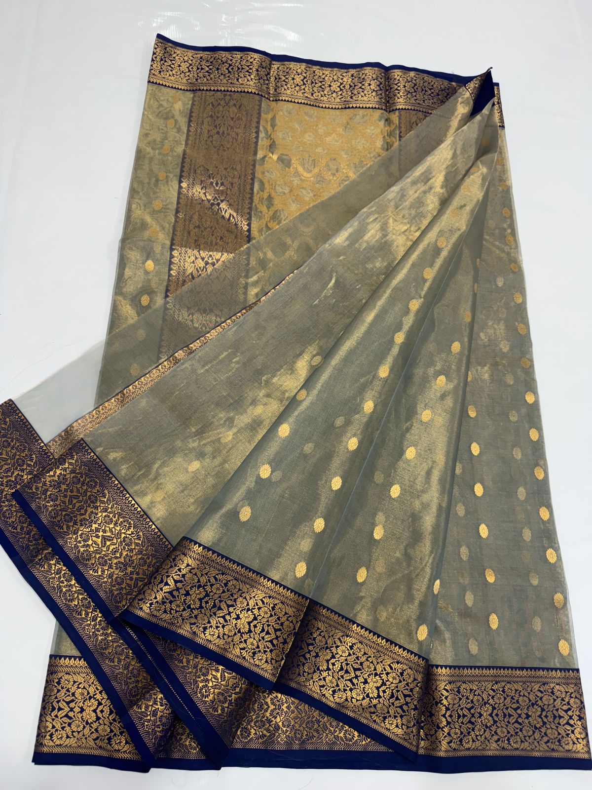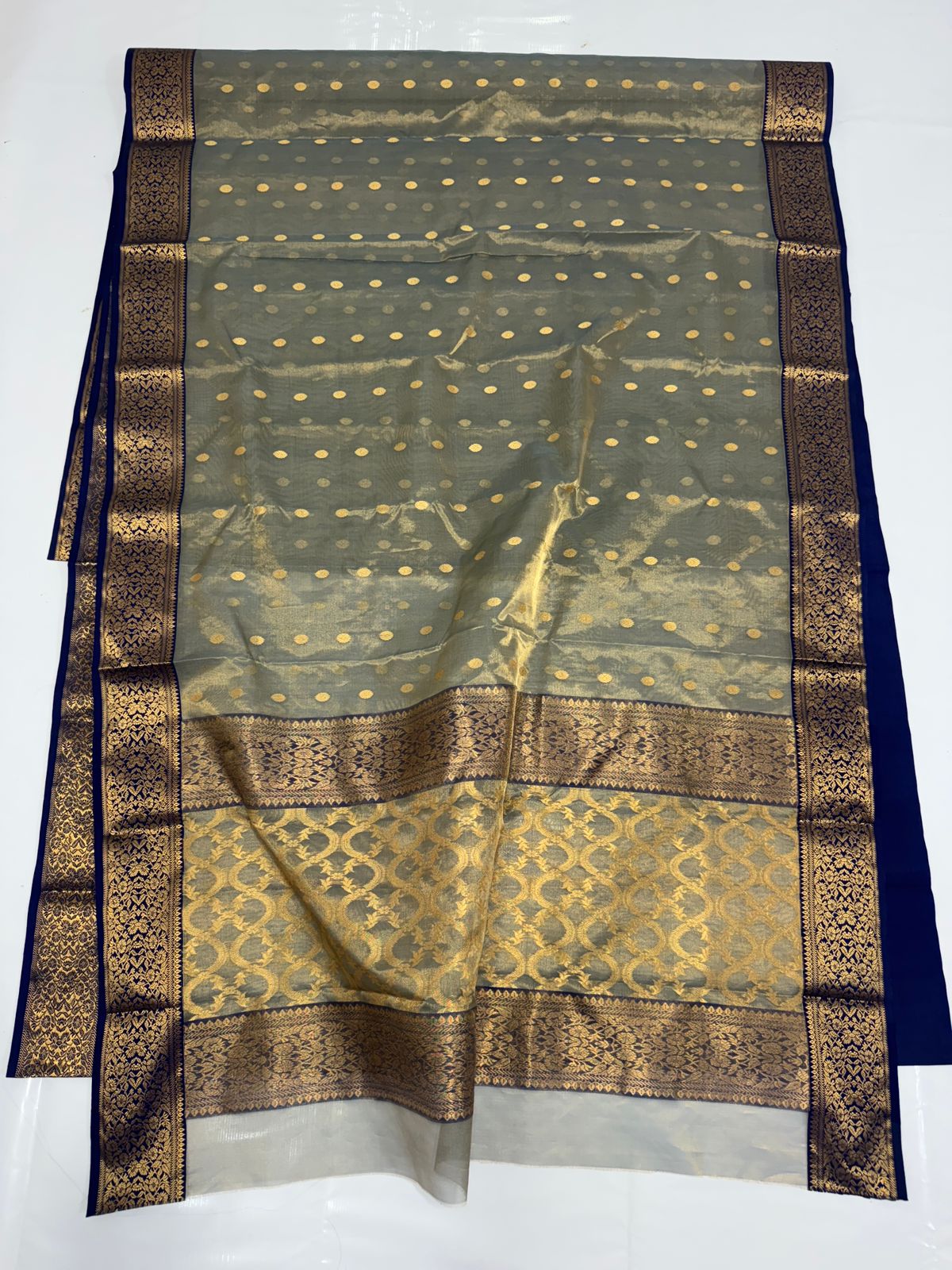 Dual Tone Grey Chanderi Handloom Katan Tissue Silk Saree