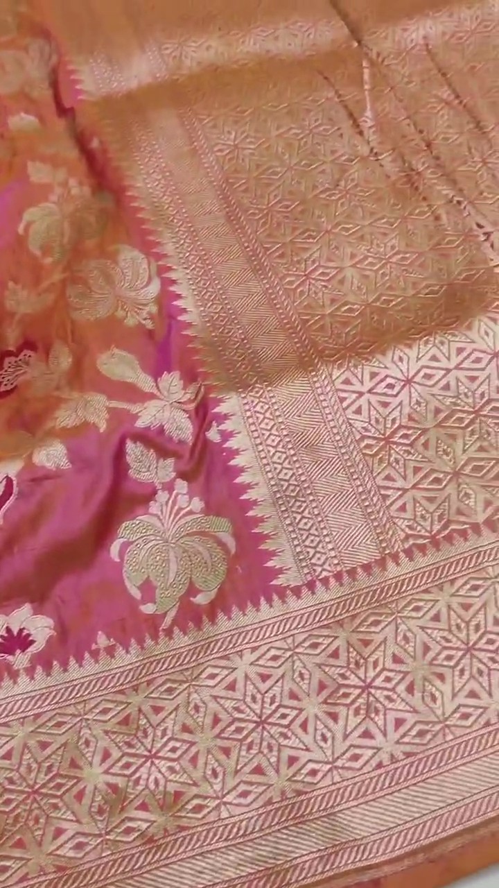 Dual Tone Hot Pink Banarasi Handloom Katan Silk Brocade Saree