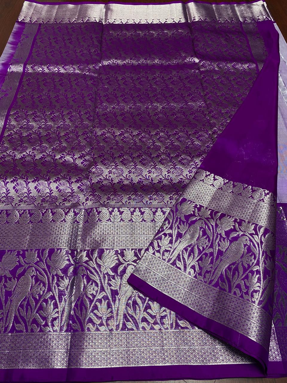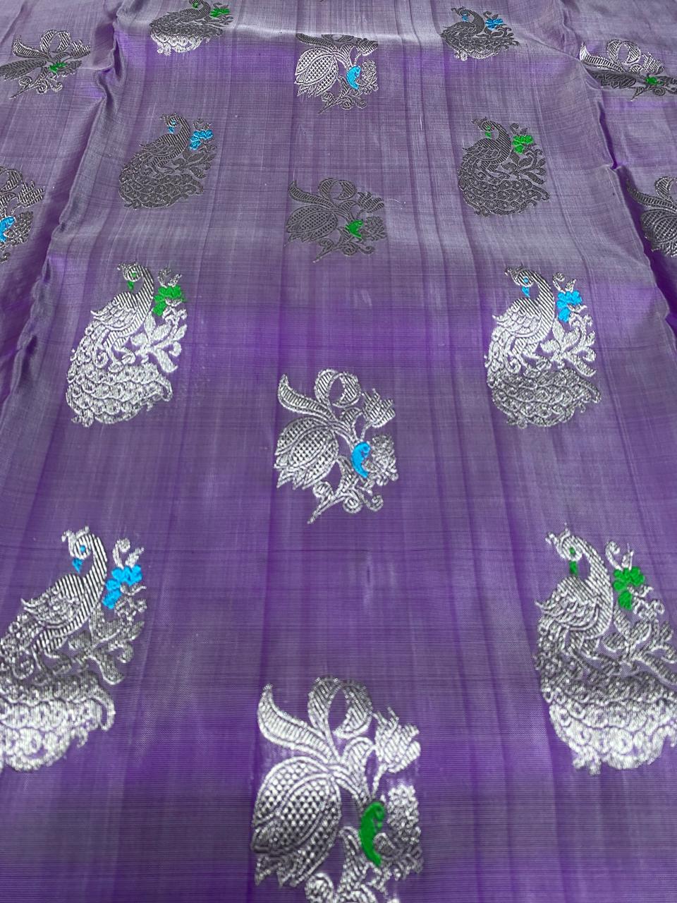 Dual Tone Lavender Venkatagiri Handloom Pattu Silk meenakari Saree