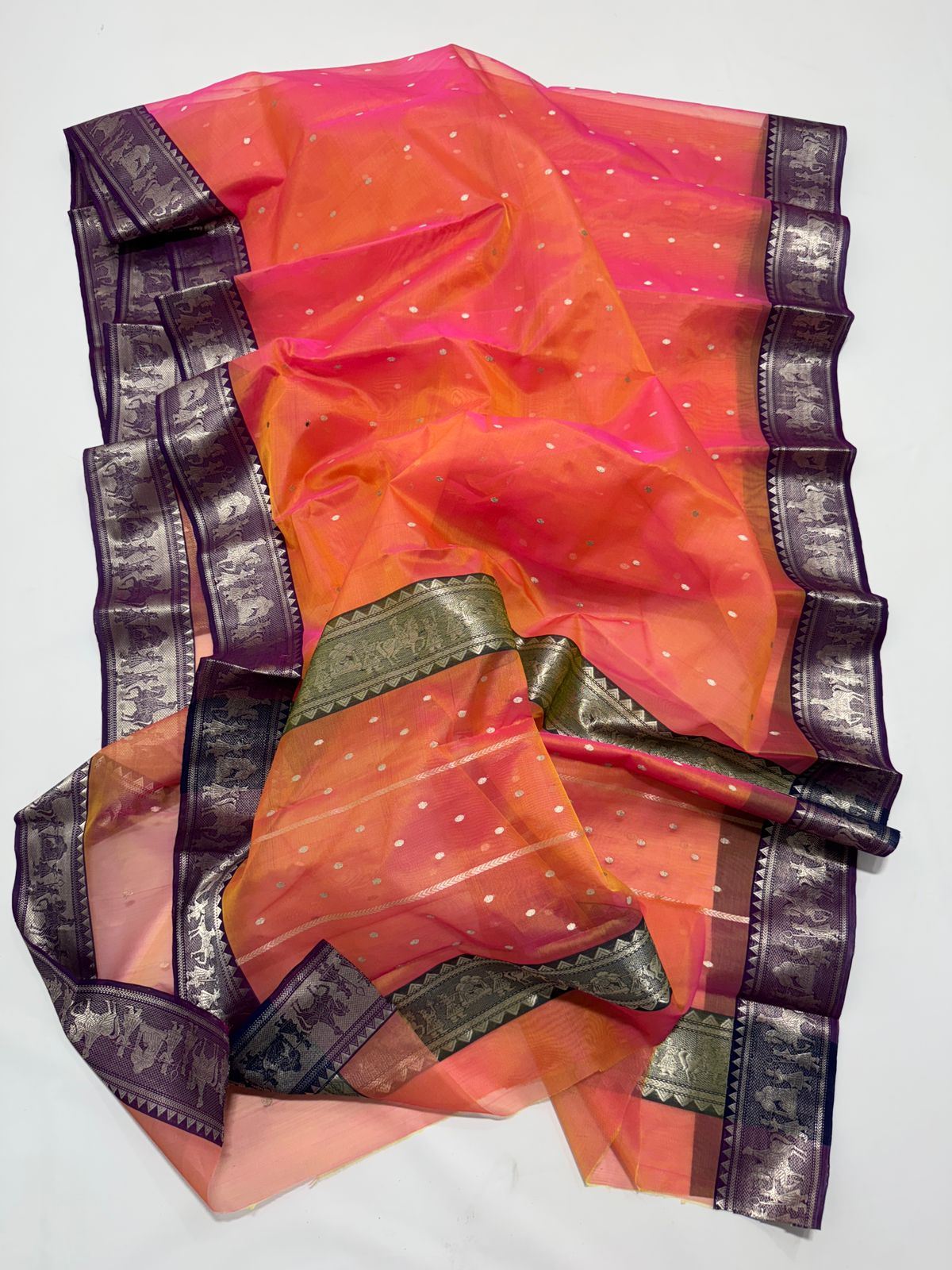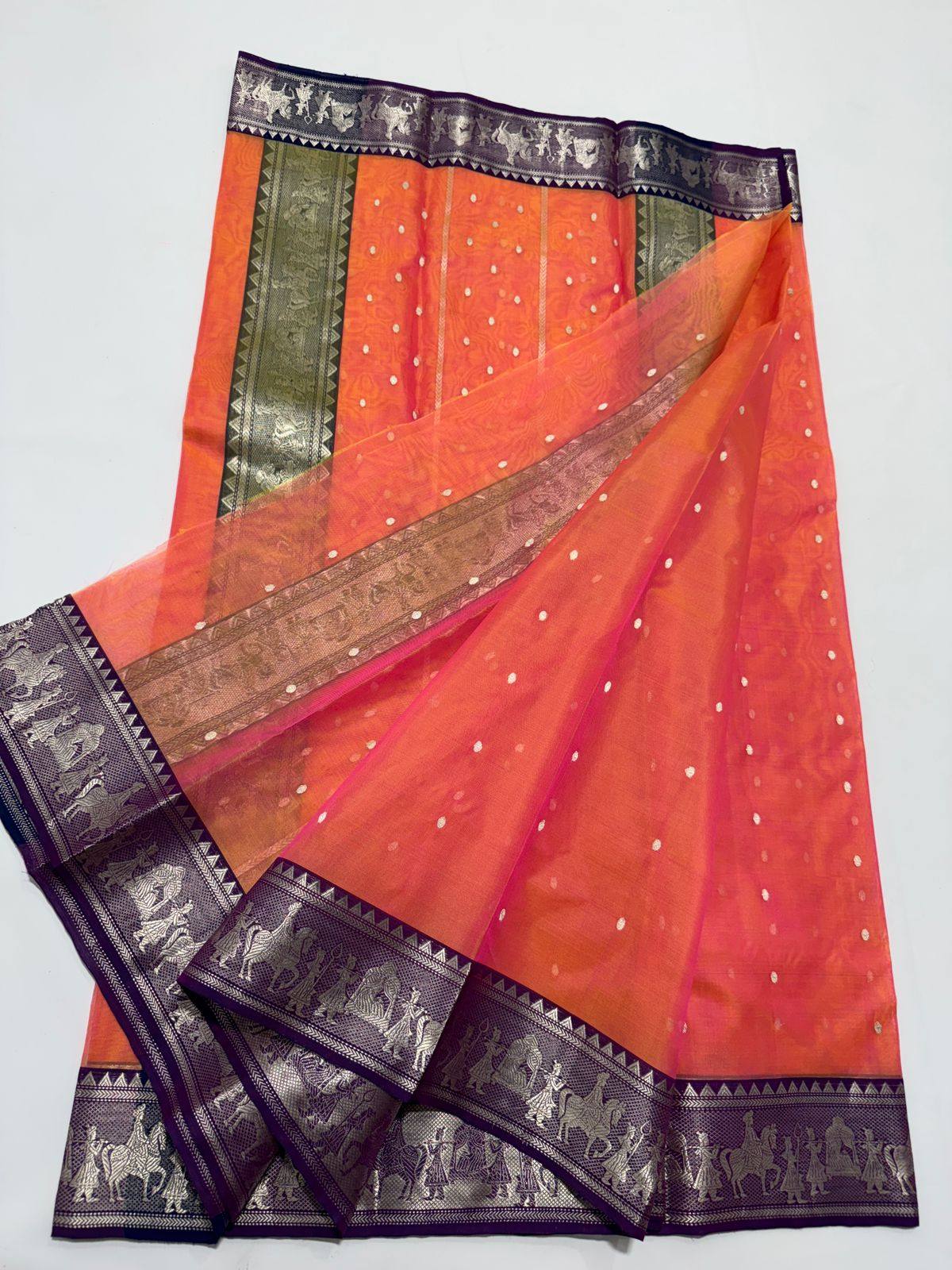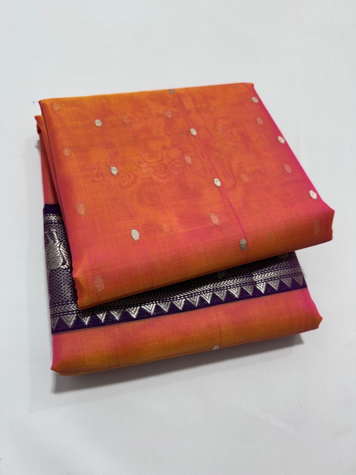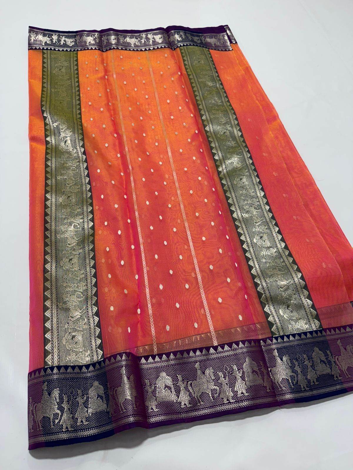 Dual Tone Orange Chanderi Handloom Katan Silk Nakshi Saree