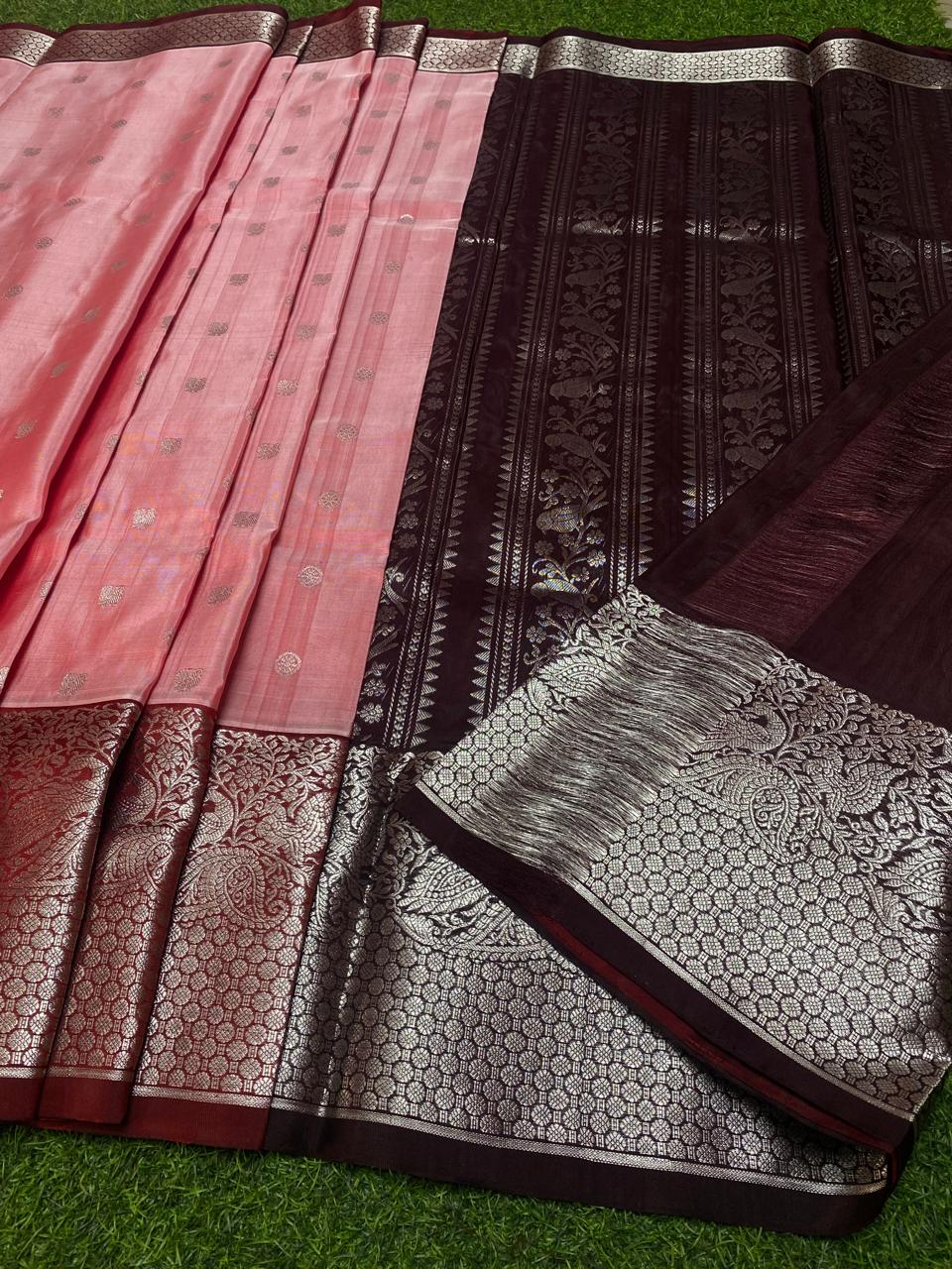 Dual Tone Pink Venkatagiri Handloom Pattu Silk Meenakari Saree