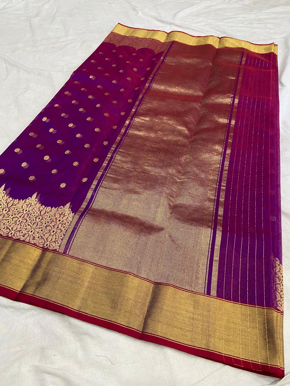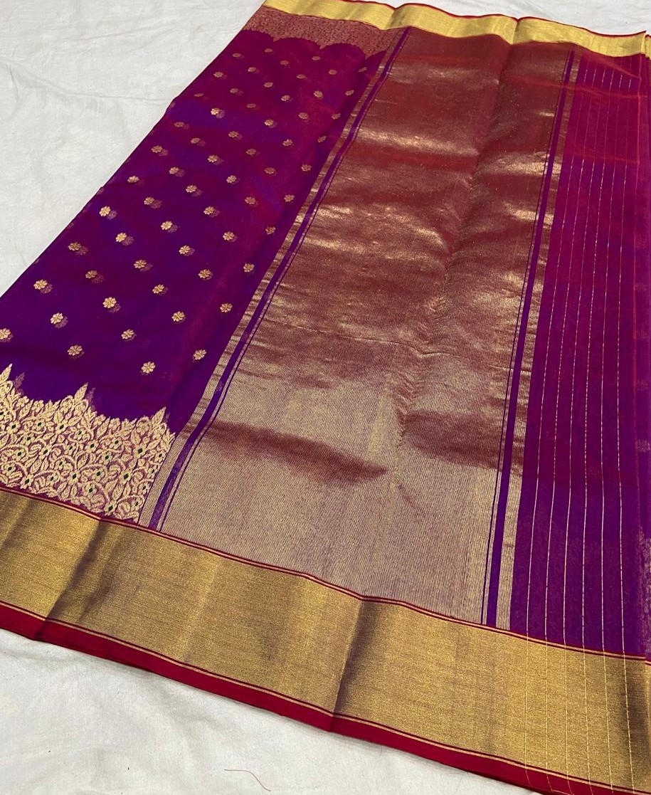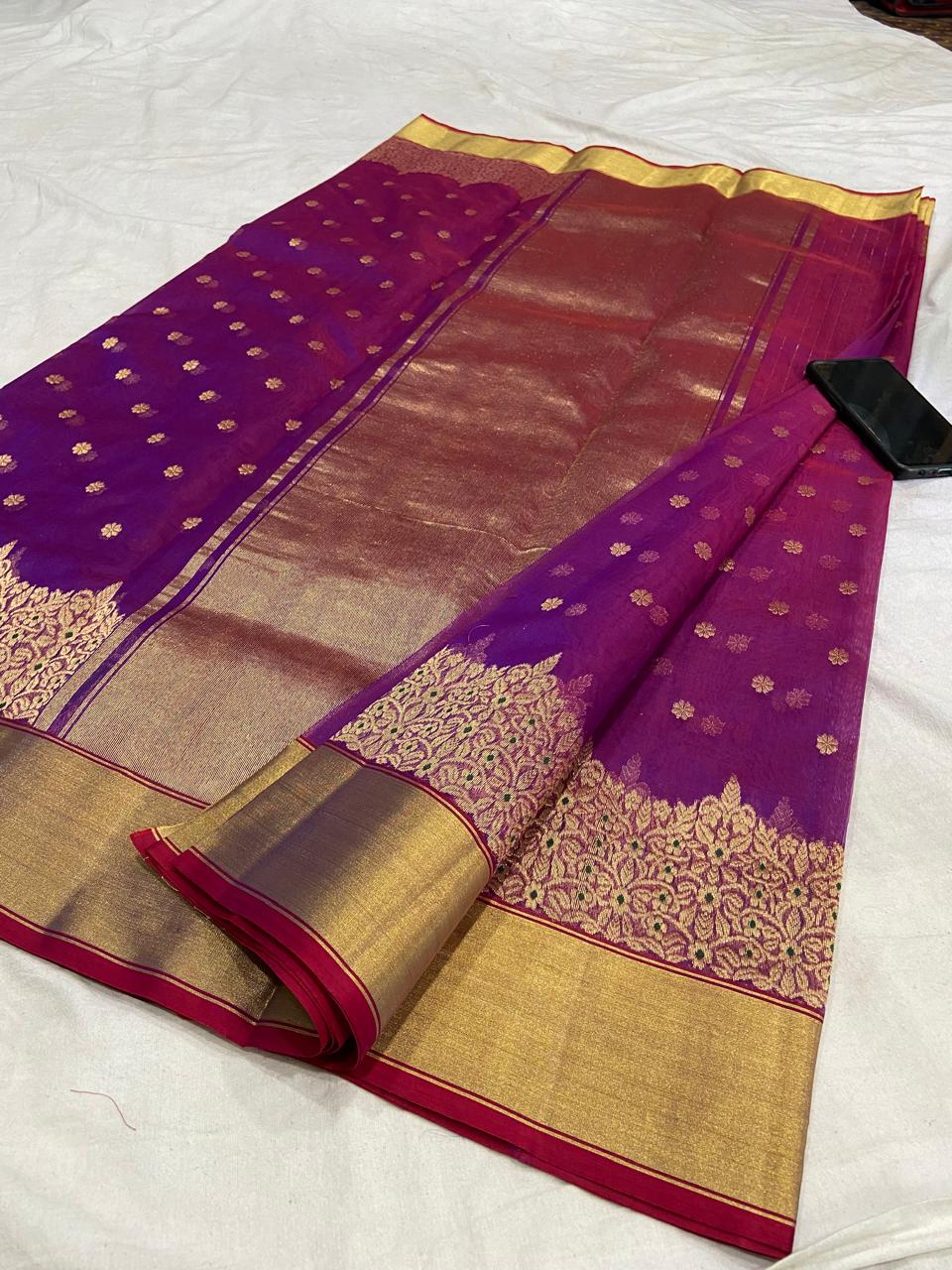 Purple Chanderi Handloom Katan Silk Meenakari Saree