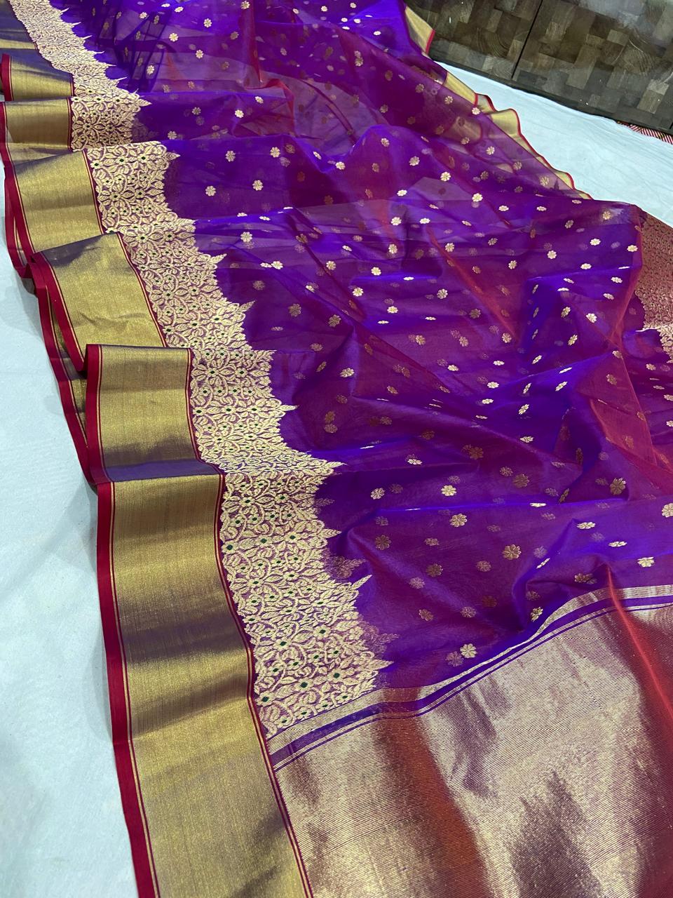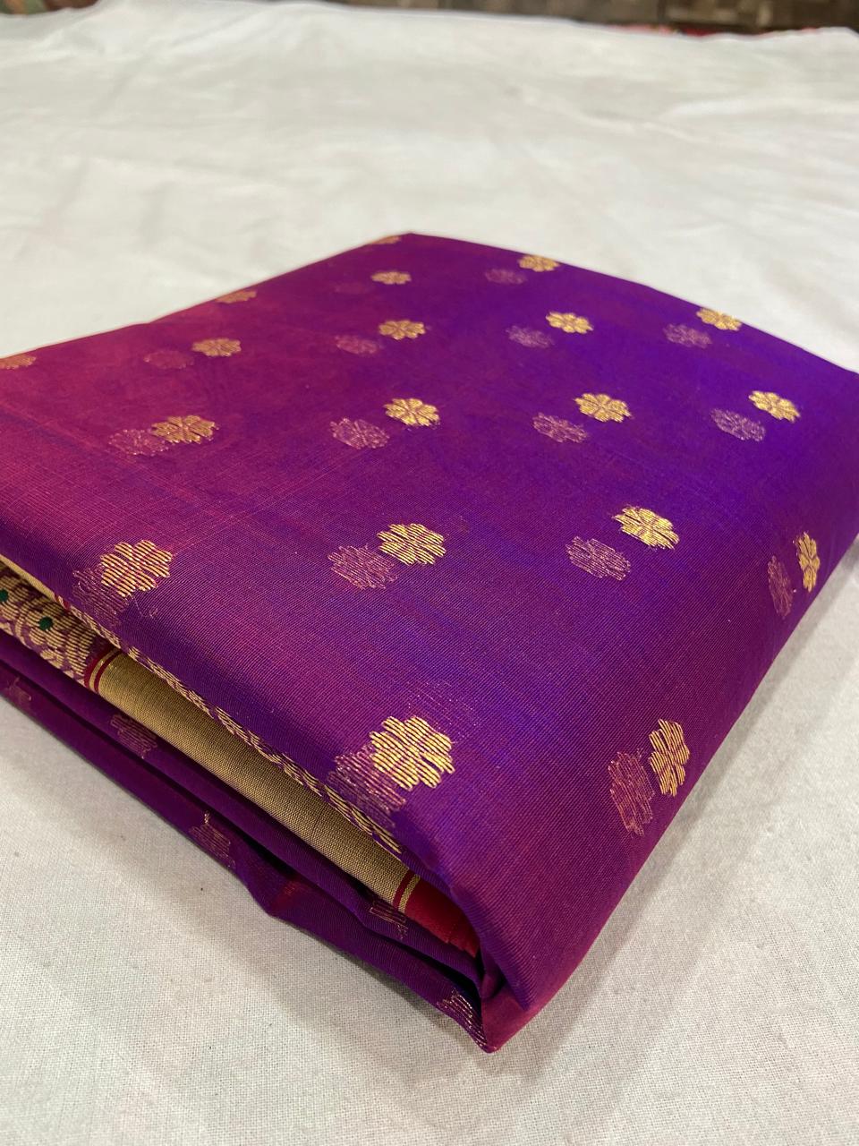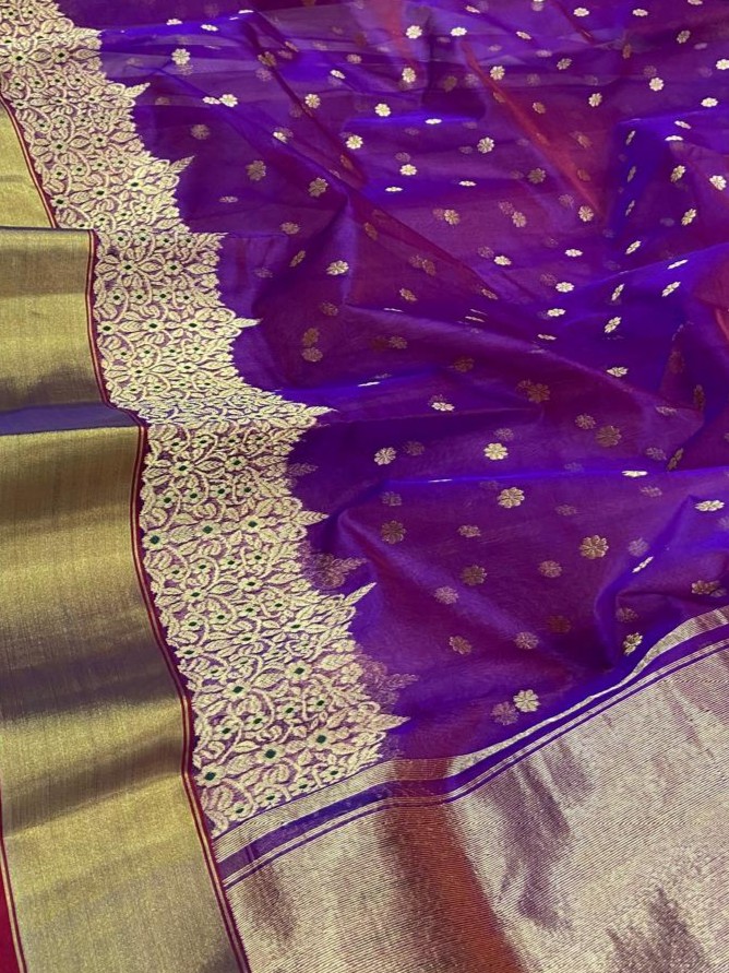 Purple Chanderi Handloom Katan Silk Meenakari Saree