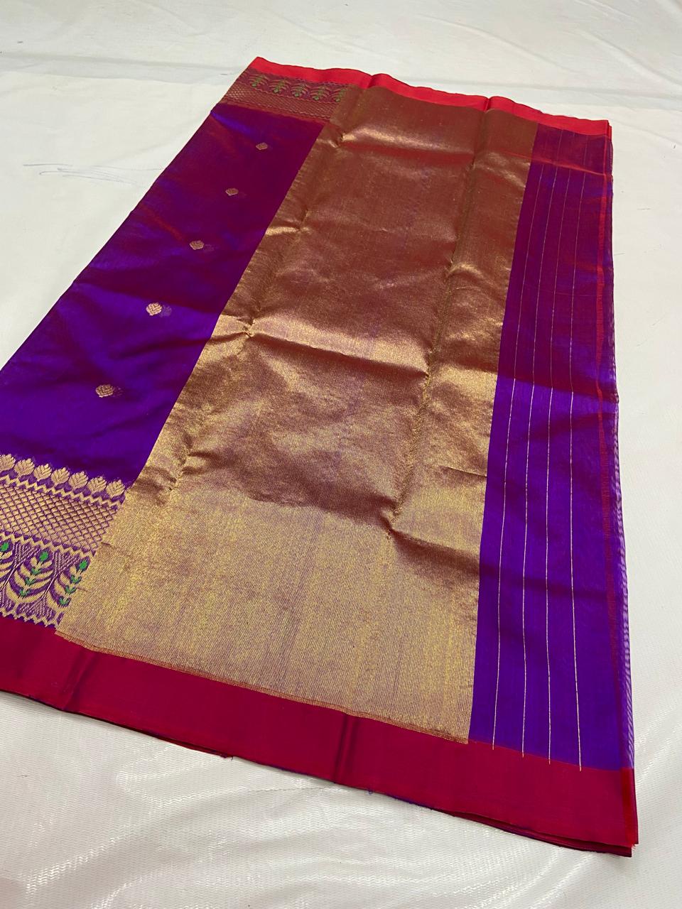 Purple Chanderi Handloom Pattu Silk Meenakari Saree