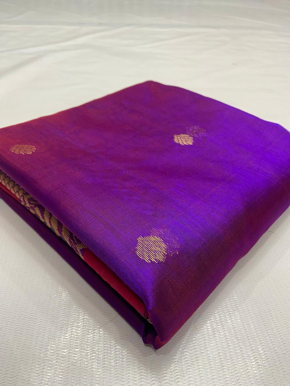 Dual Tone Purple Chanderi Handloom Pattu Silk Saree