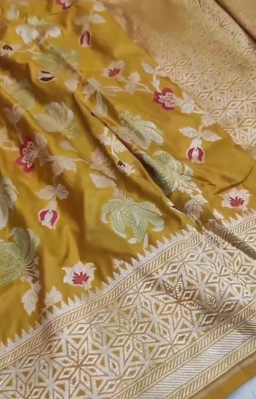 Mustard Banarasi Handloom Katan Silk Rangkaat Meenakari Saree