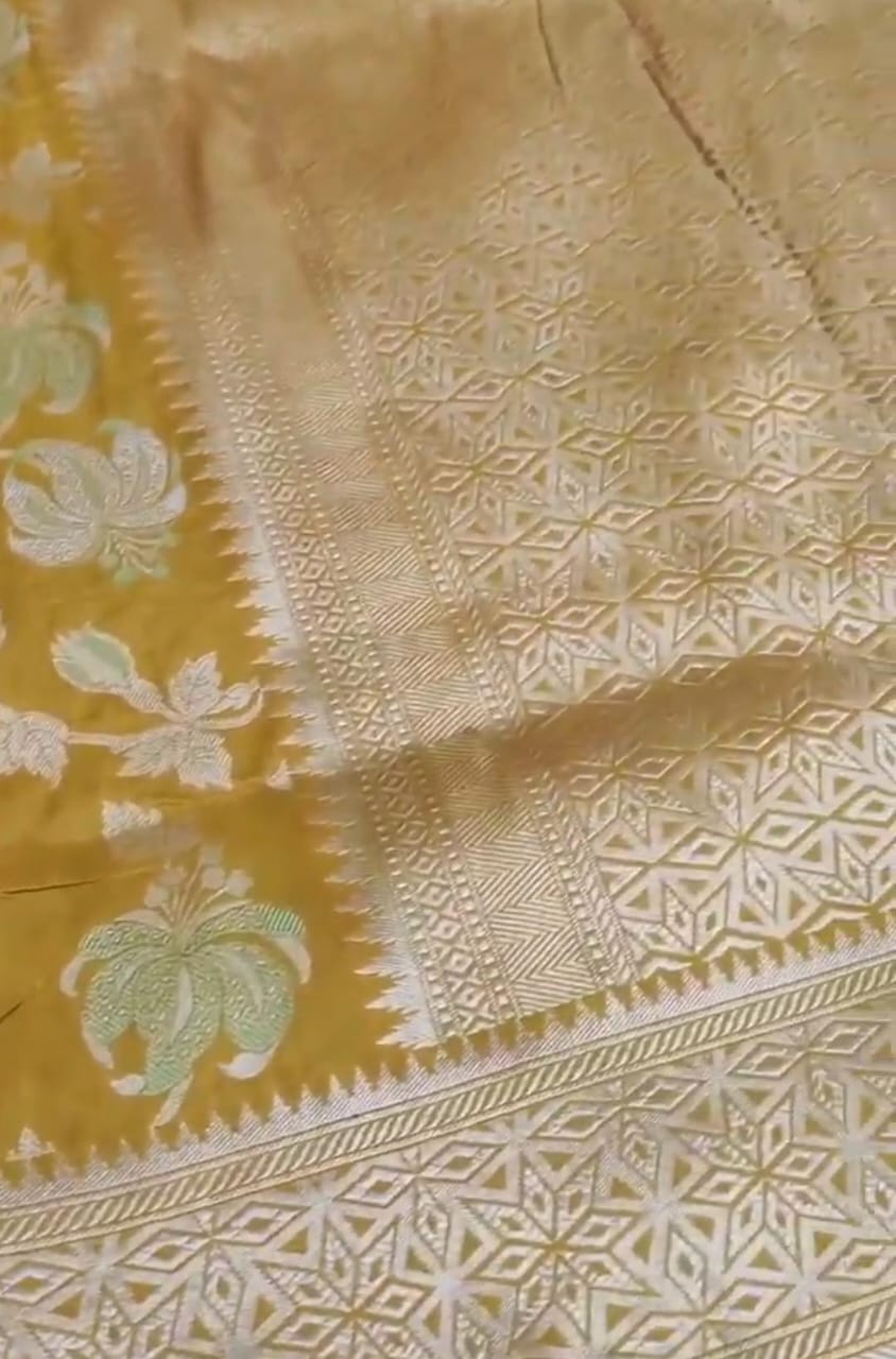 Golden Yellow Banarasi Handloom Katan Silk Meenakari Saree