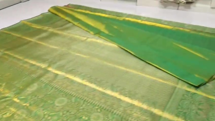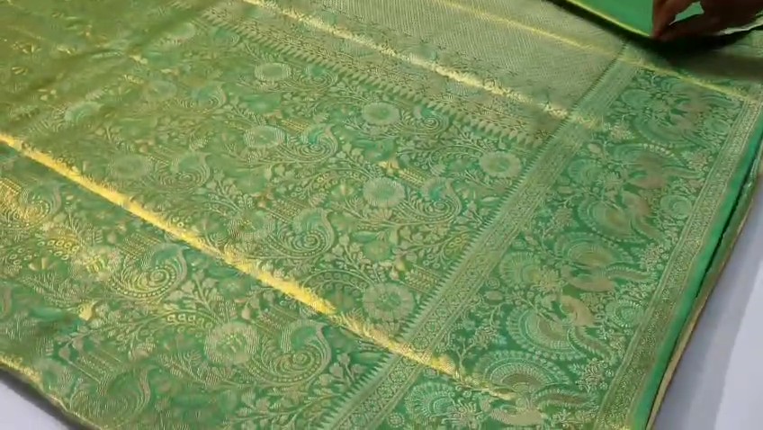 Emerald Green Kanchipuram Handloom Tissue Brocade Silk Saree