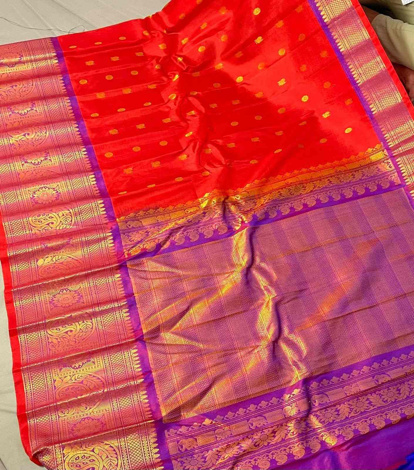 Dual Tone Orange Gadwal Handloom Pattu Silk Brocade Saree