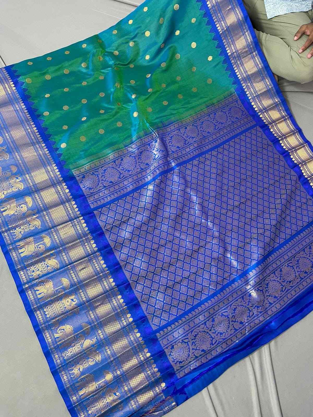 Dual Tone Sea Green Gadwal Handloom Pattu Silk Brocade Saree