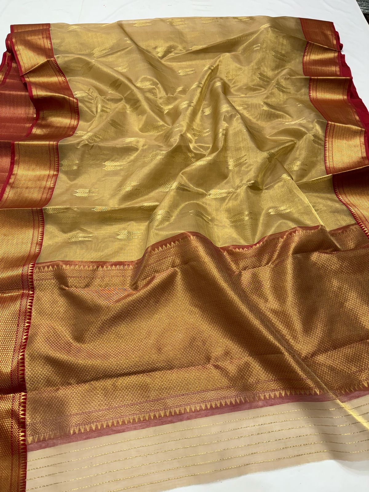 Gold Chanderi Handloom Katan Tissue Silk Saree