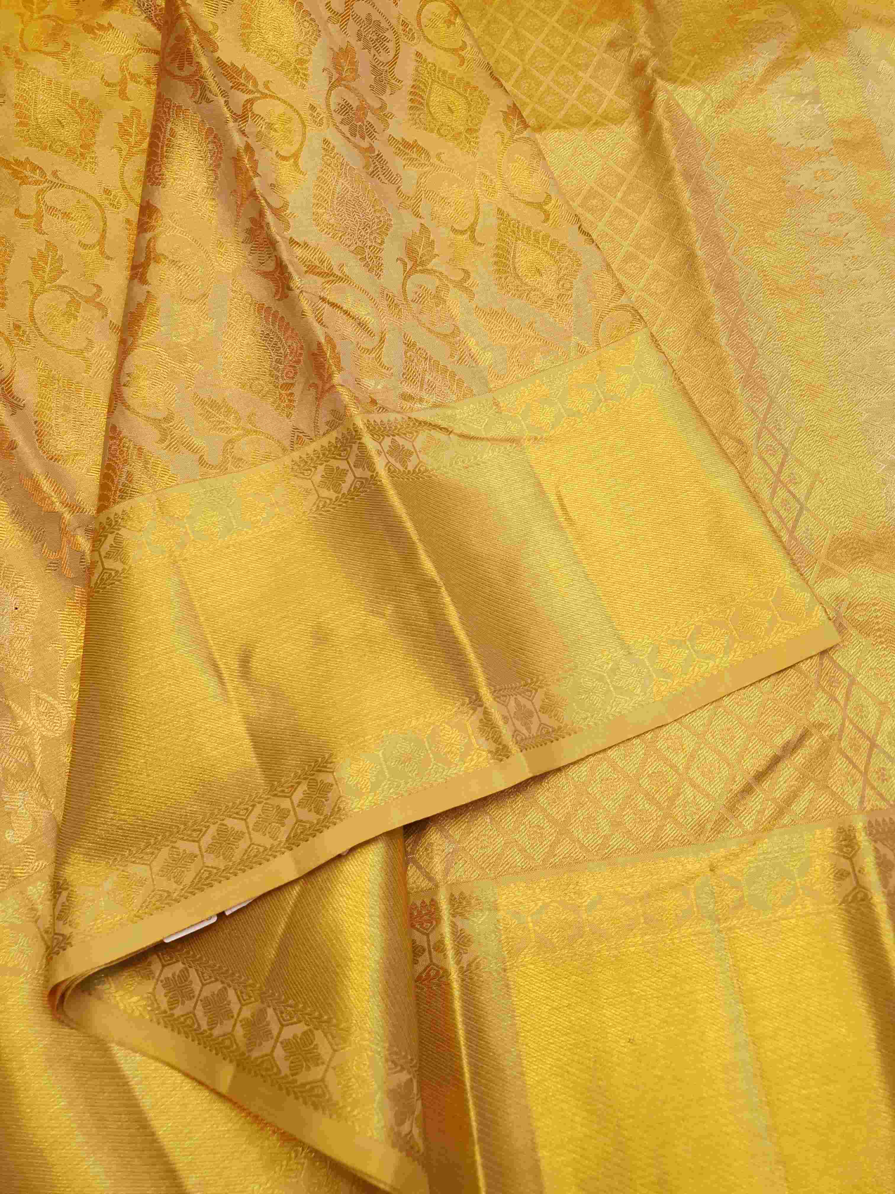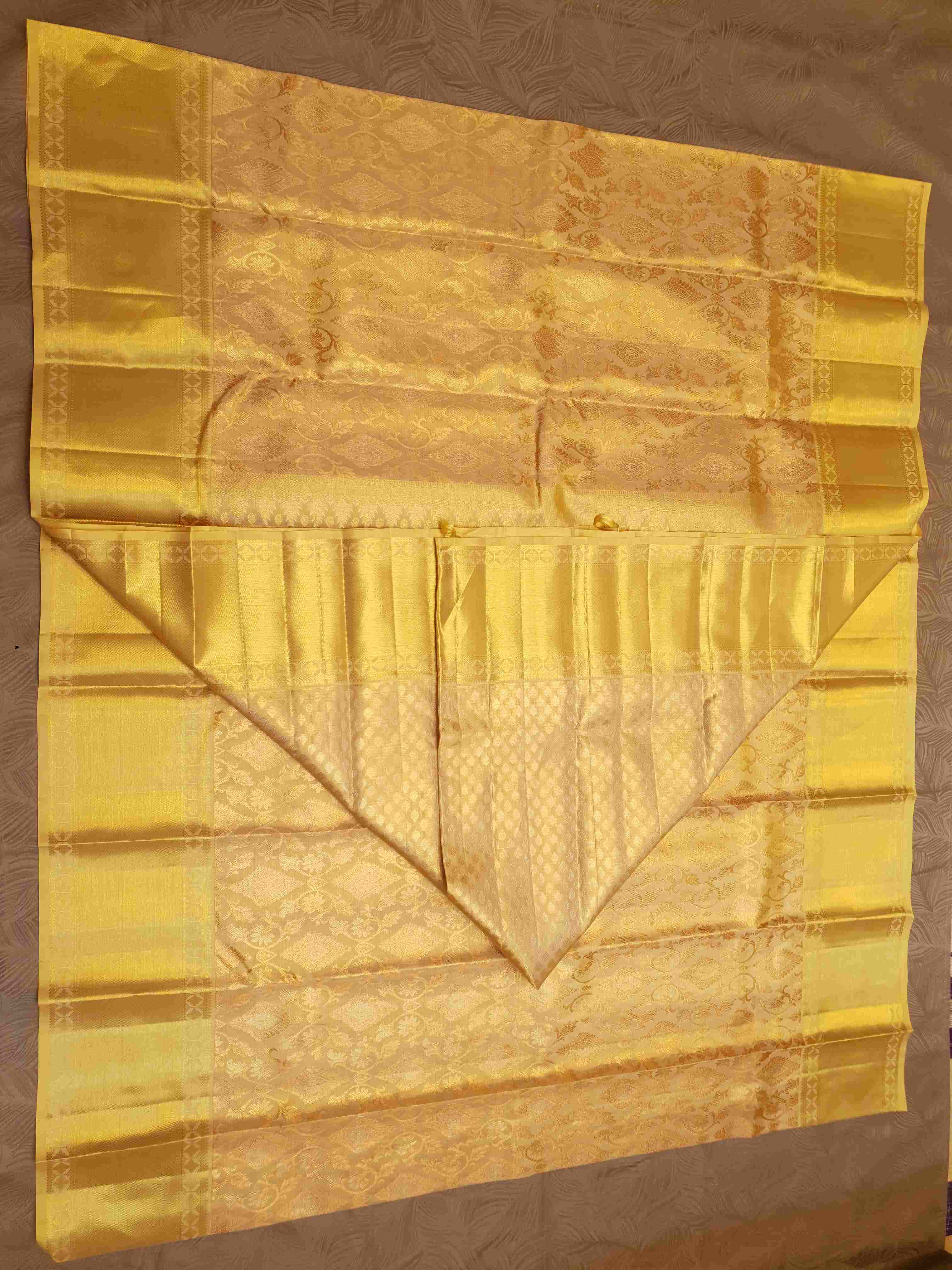 Yellow Gold Kanchipuram Handloom 2G Gold Brocade Pattu Silk Saree