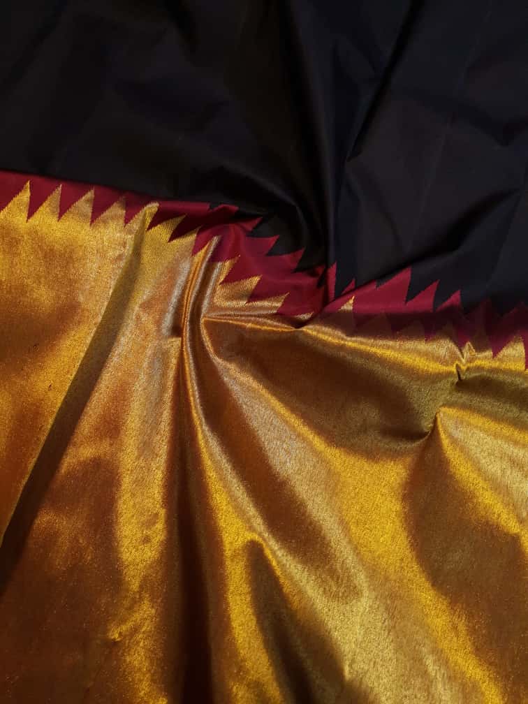 Gold, Maroon & Black Kanchipuram Handloom 2G Gold Pattu Silk Saree