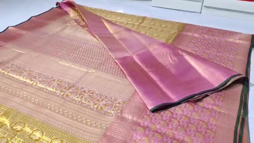 Pink Kanchipram Handloom Tissue Brocade Silk Saree