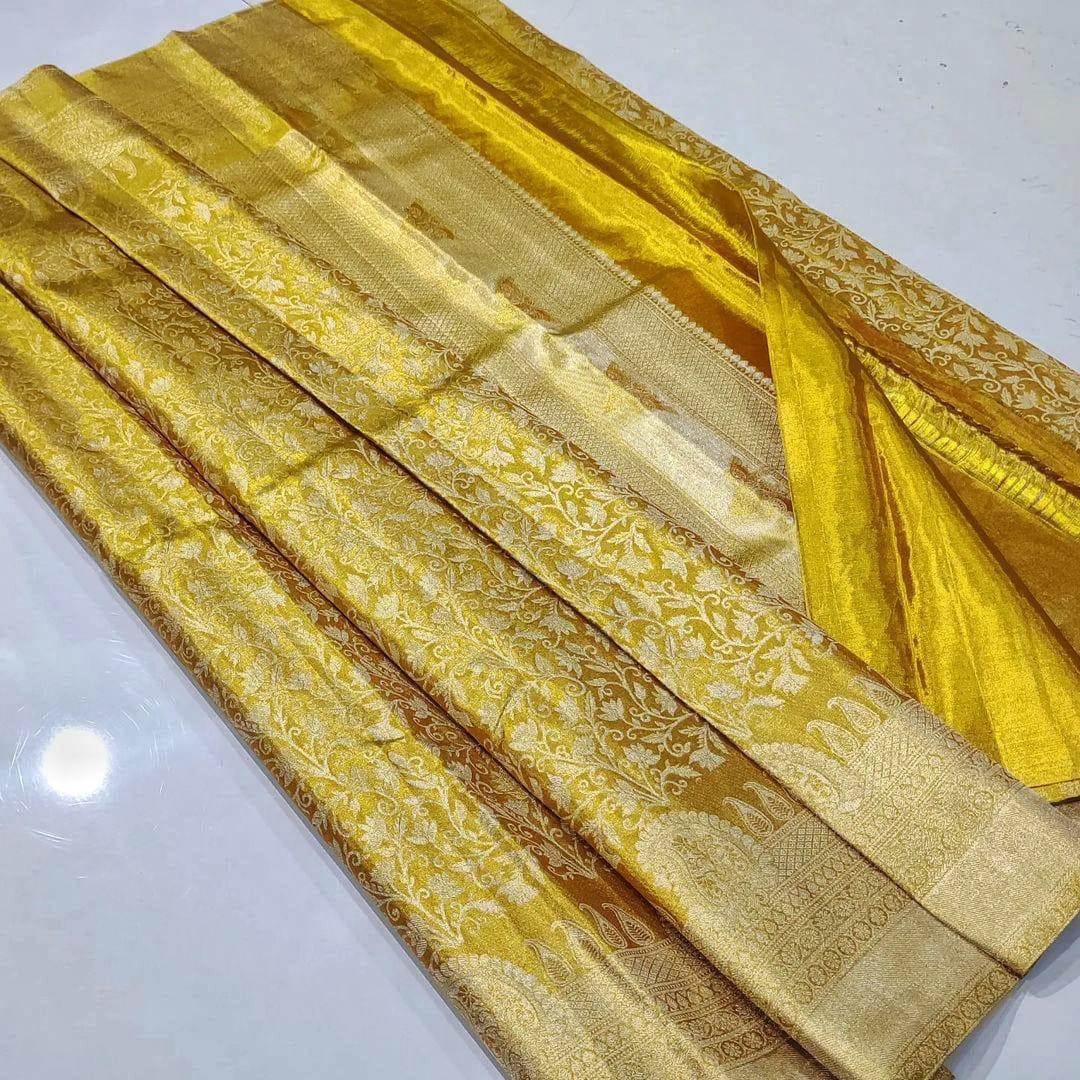 Gold Kanchipuram Handloom Tissue Brocade Silk Saree