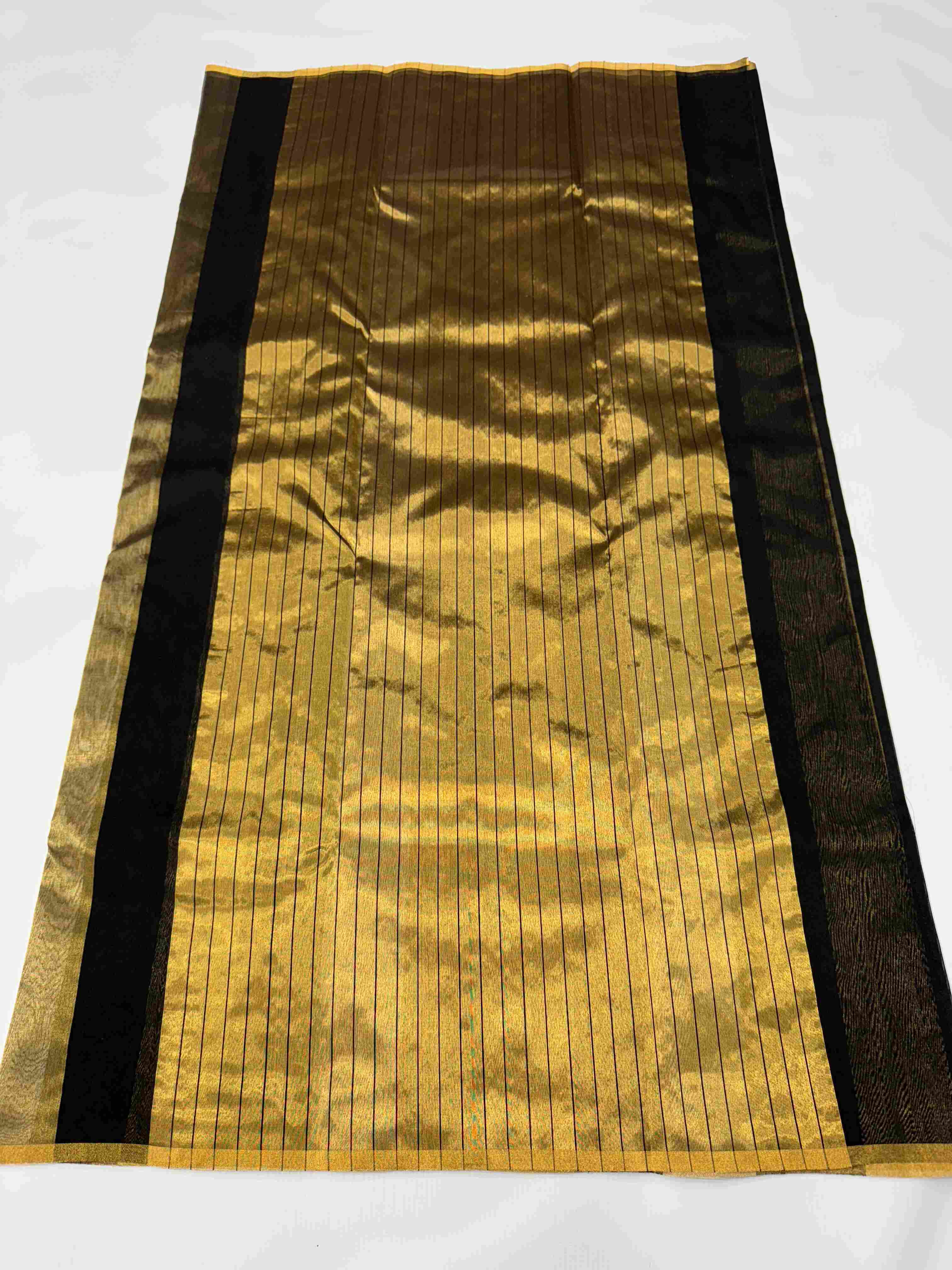 Gold & Black Chanderi Handloom Metallic Tissue Silk Contemporary Saree