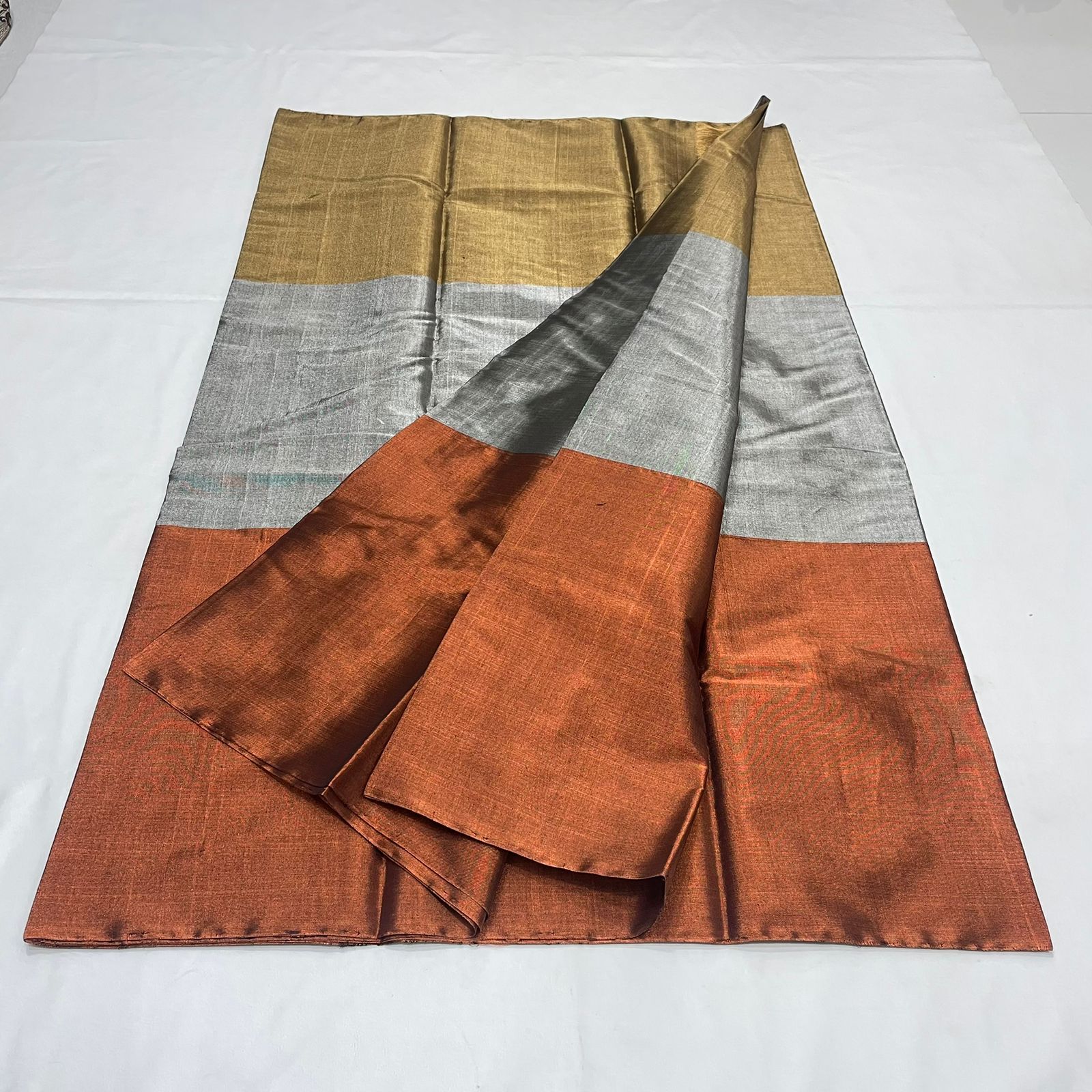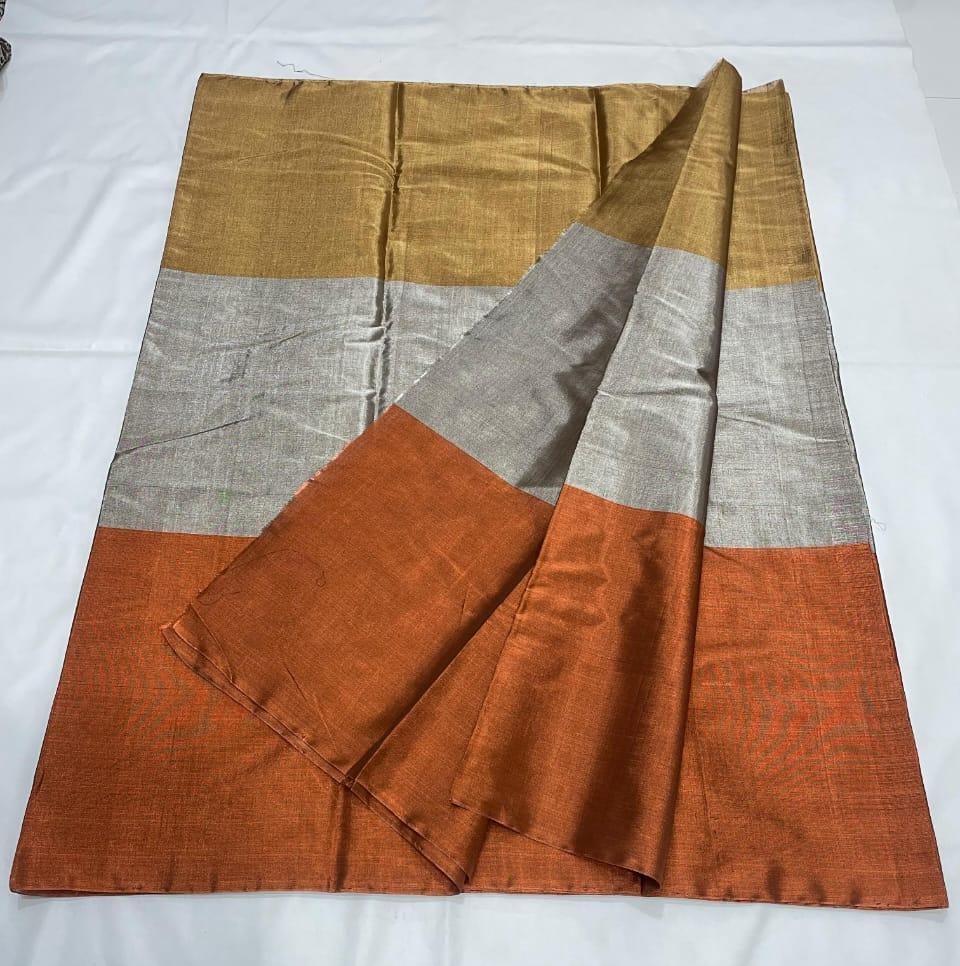 Gold, Silver & Copper Chanderi Handloom Metallic Tissue Silk Contemporary Saree
