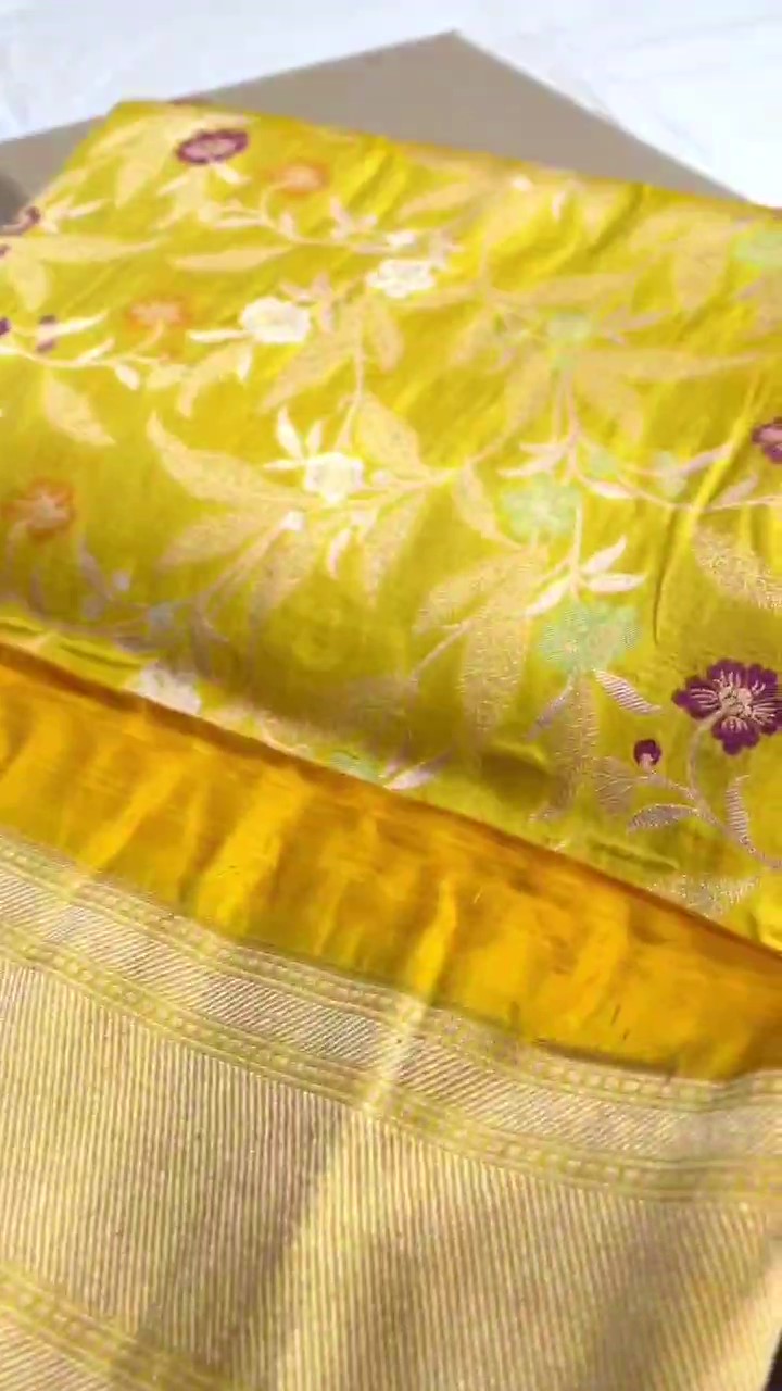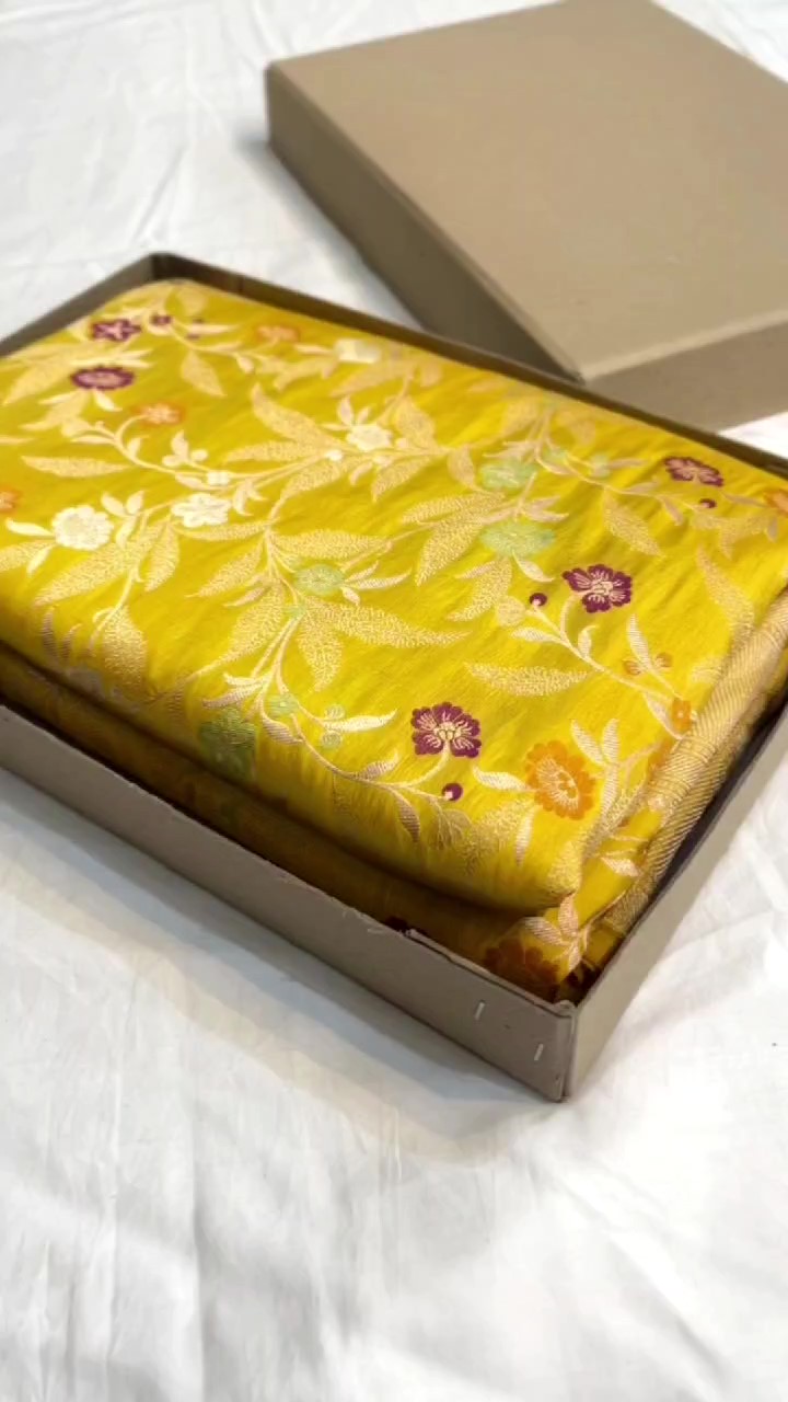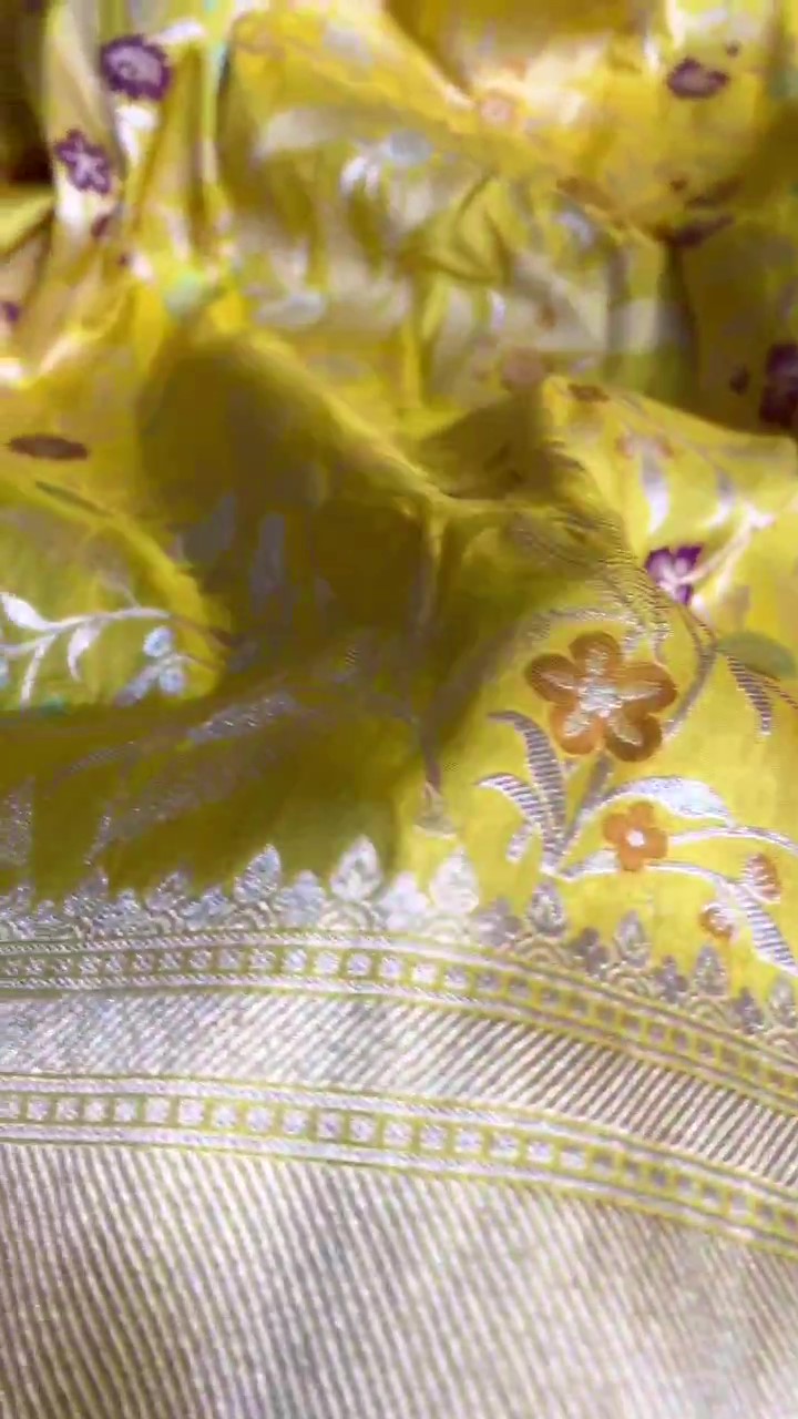 Golden Yellow Banarasi Handloom Katan Silk Meenakari Saree