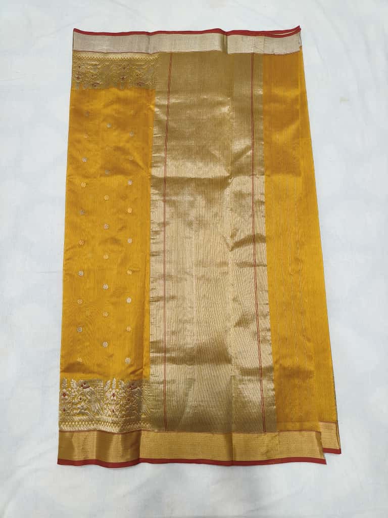 Mustard Yellow Chanderi Handloom Pattu Silk Meenakari Saree