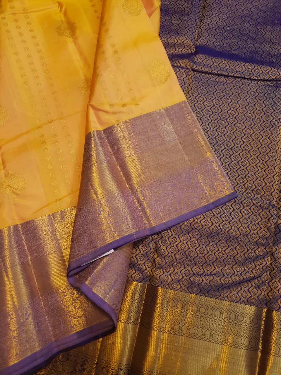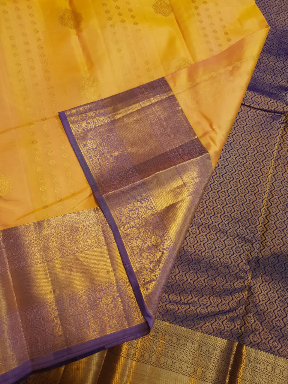 Golden Yellow Kanchipuram Handloom 2G Gold Pattu Silk Saree