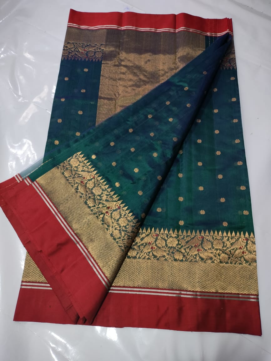 Bottle Green Chanderi Handloom Pattu Silk Meenakari Nakshi Saree