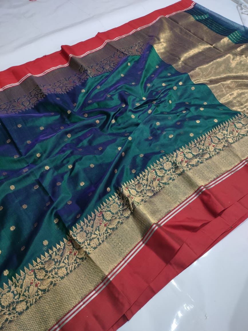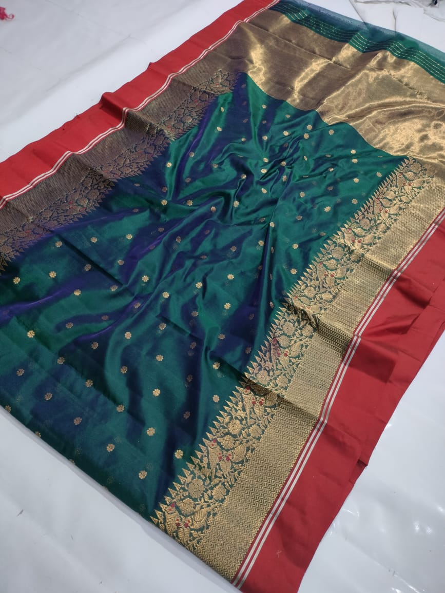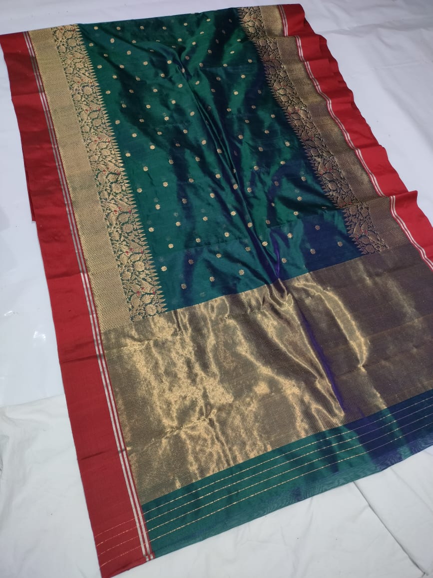 Bottle Green Chanderi Handloom Pattu Silk Meenakari Saree