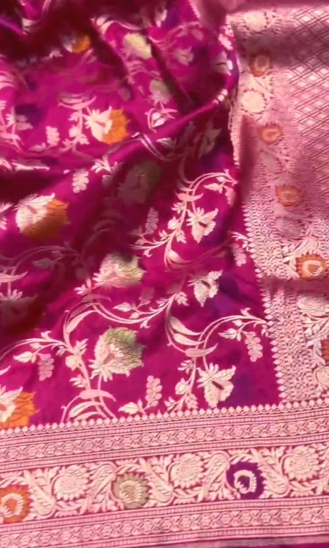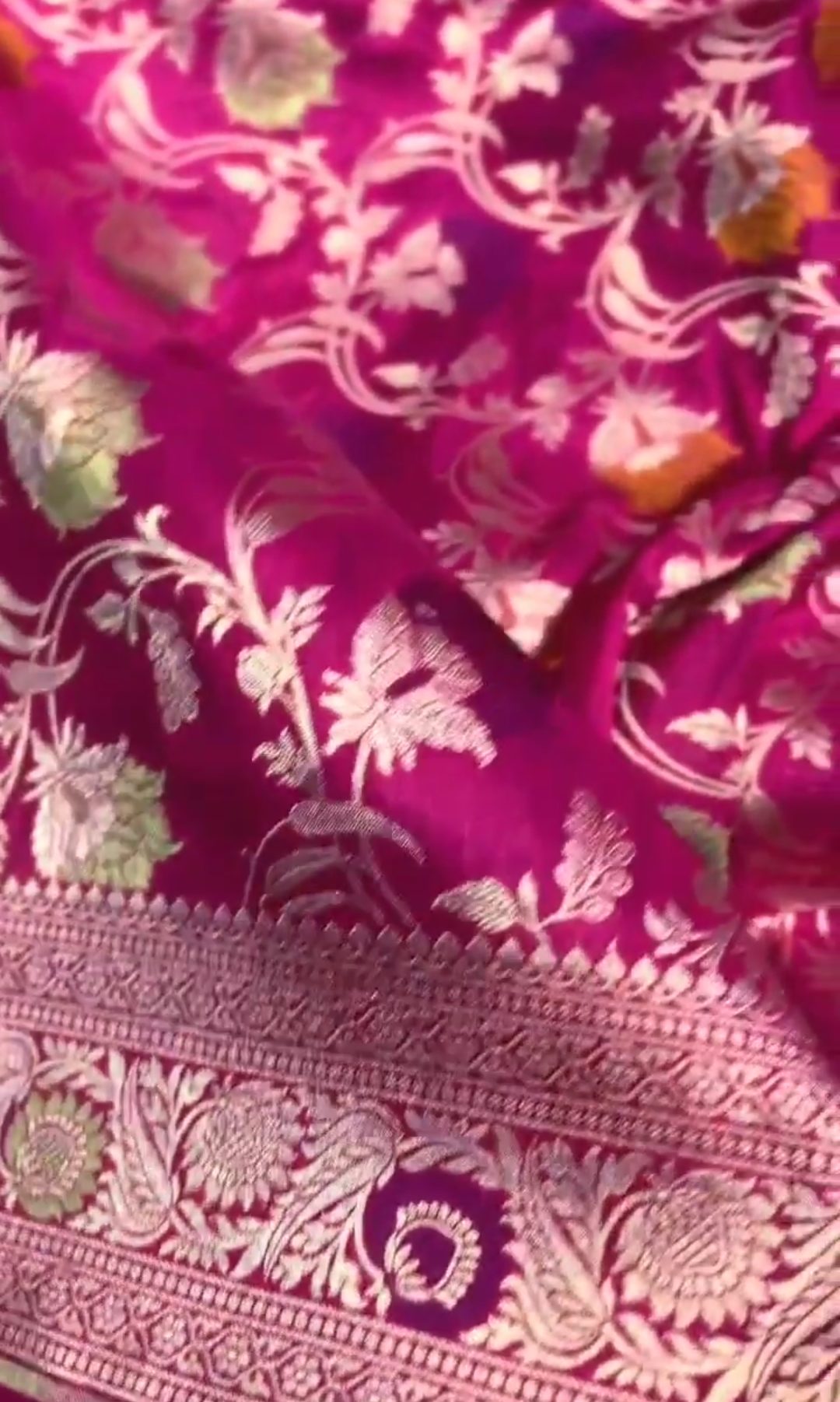 Hot Pink Banarasi Handloom Katan Silk Rangkaat Meenakari Saree