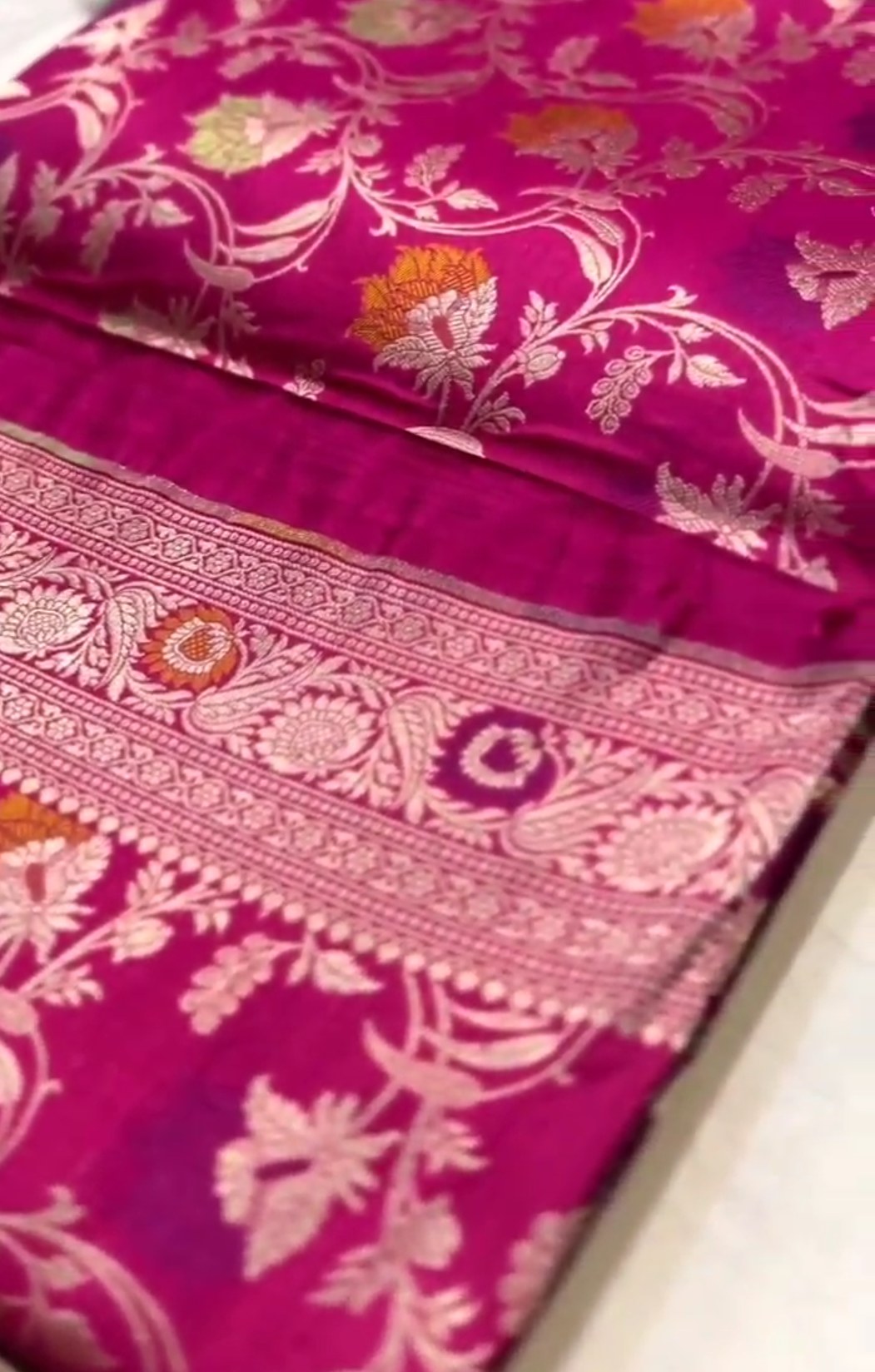 Dark Pink Banarasi Handloom Katan Silk Meenakari Saree