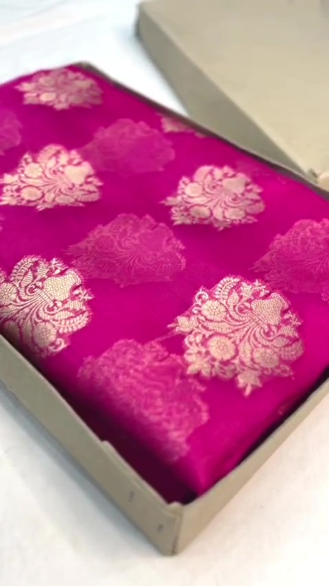 Hot Pink Banarasi Handloom Kora Organza Silk Saree