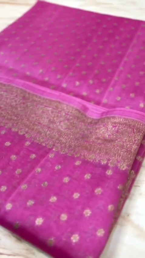 Hot Pink Banarasi Handloom Kora Organza Silk Saree