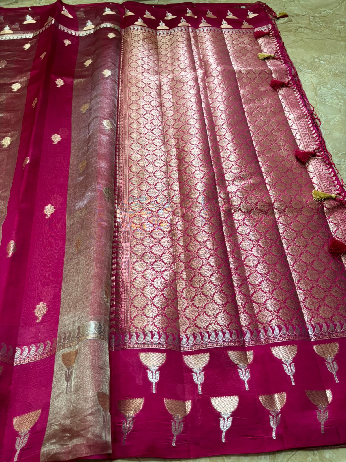 Hot Pink Banarasi Handloom Tissue Mango Silk Saree