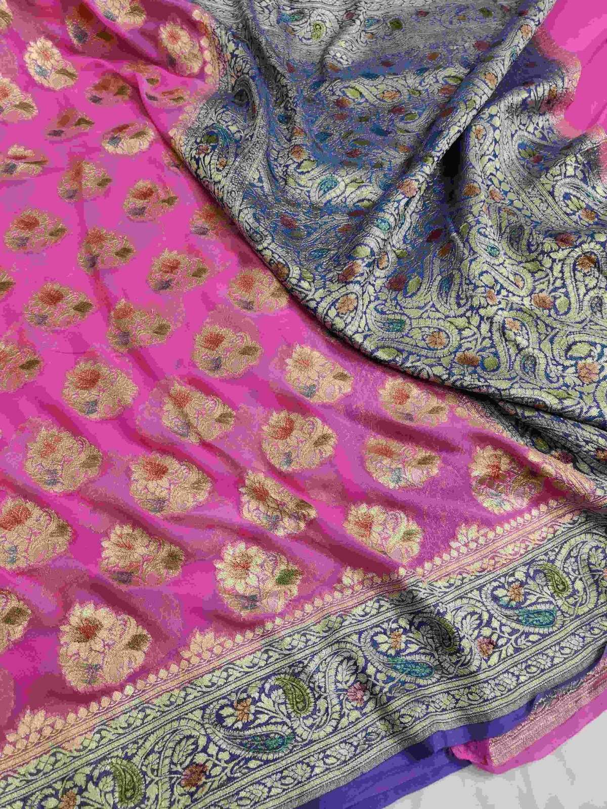 Hot Pink Banarasi Handloom Exquisite Rangkaat Georgette Silk Saree