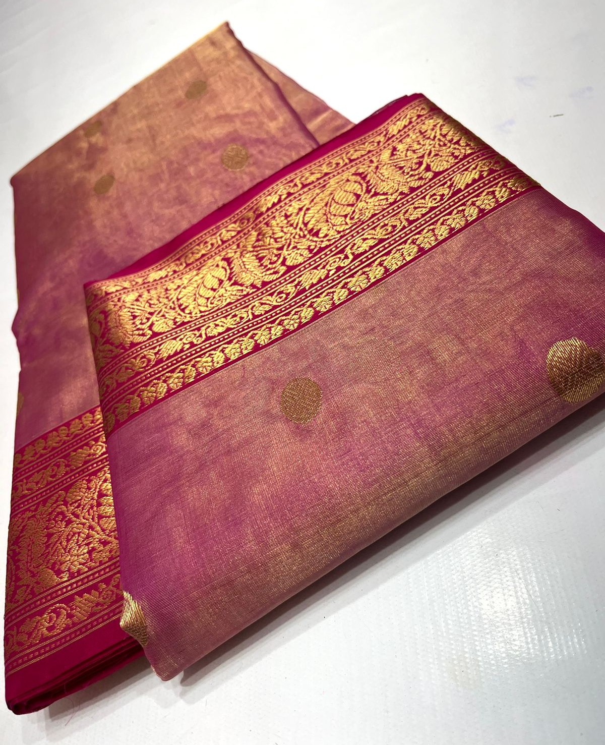 Pink Chanderi Handloom Katan Tissue Silk Saree
