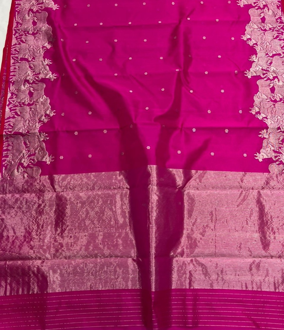 Hot Pink Handloom Pattu Silk Meenakari Handwork Saree