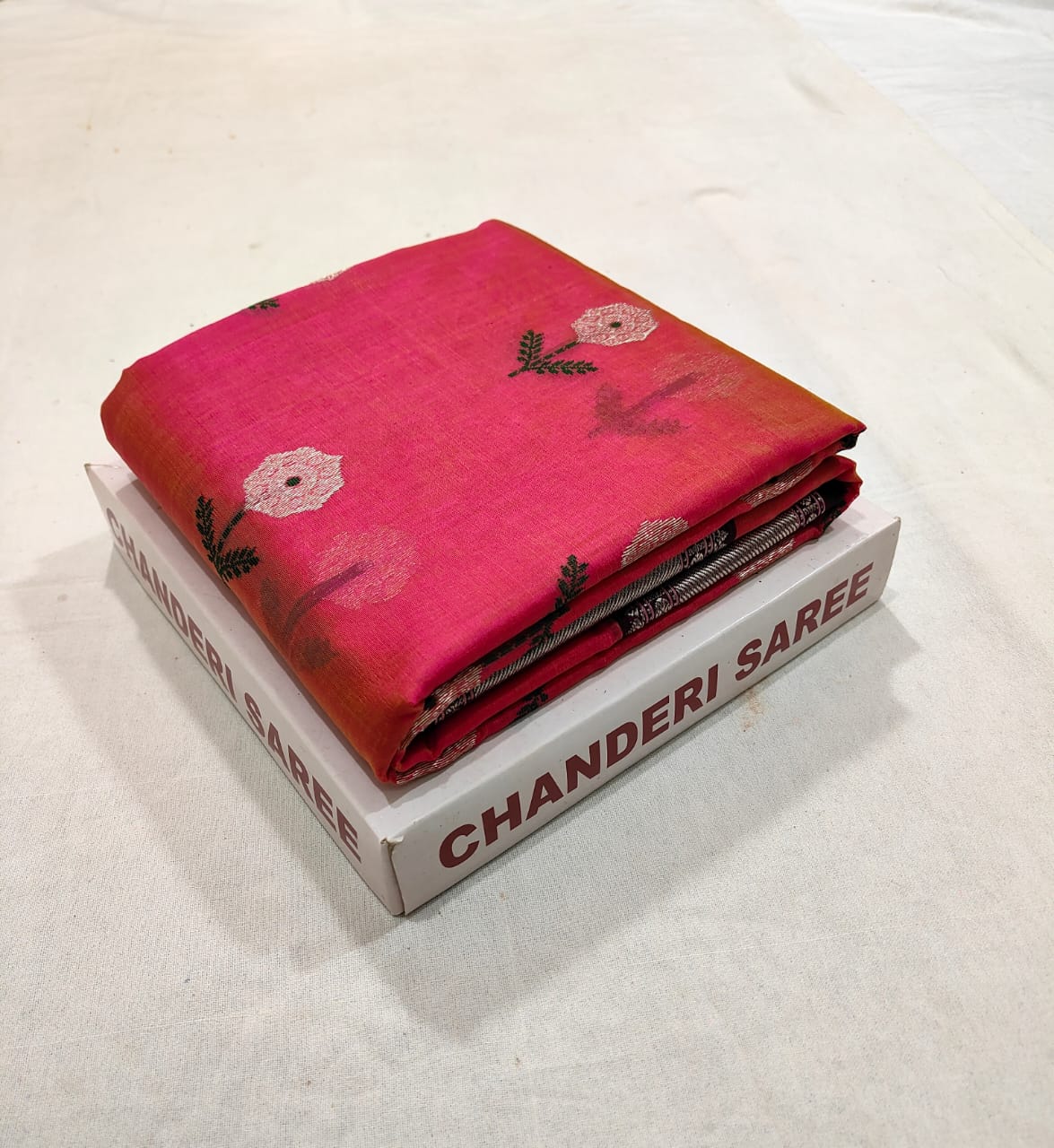 Hot Pink Chanderi Handloom Pattu Silk Handwork Saree