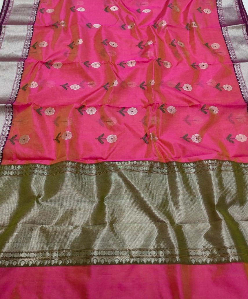 Hot Pink Chanderi Handloom Pattu Silk Meenakari Saree