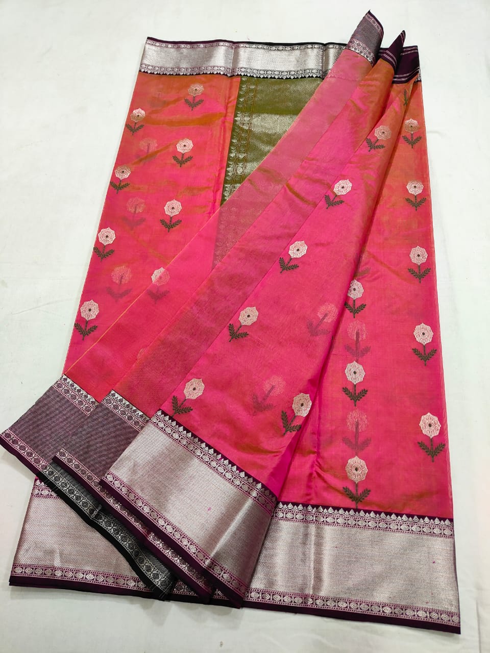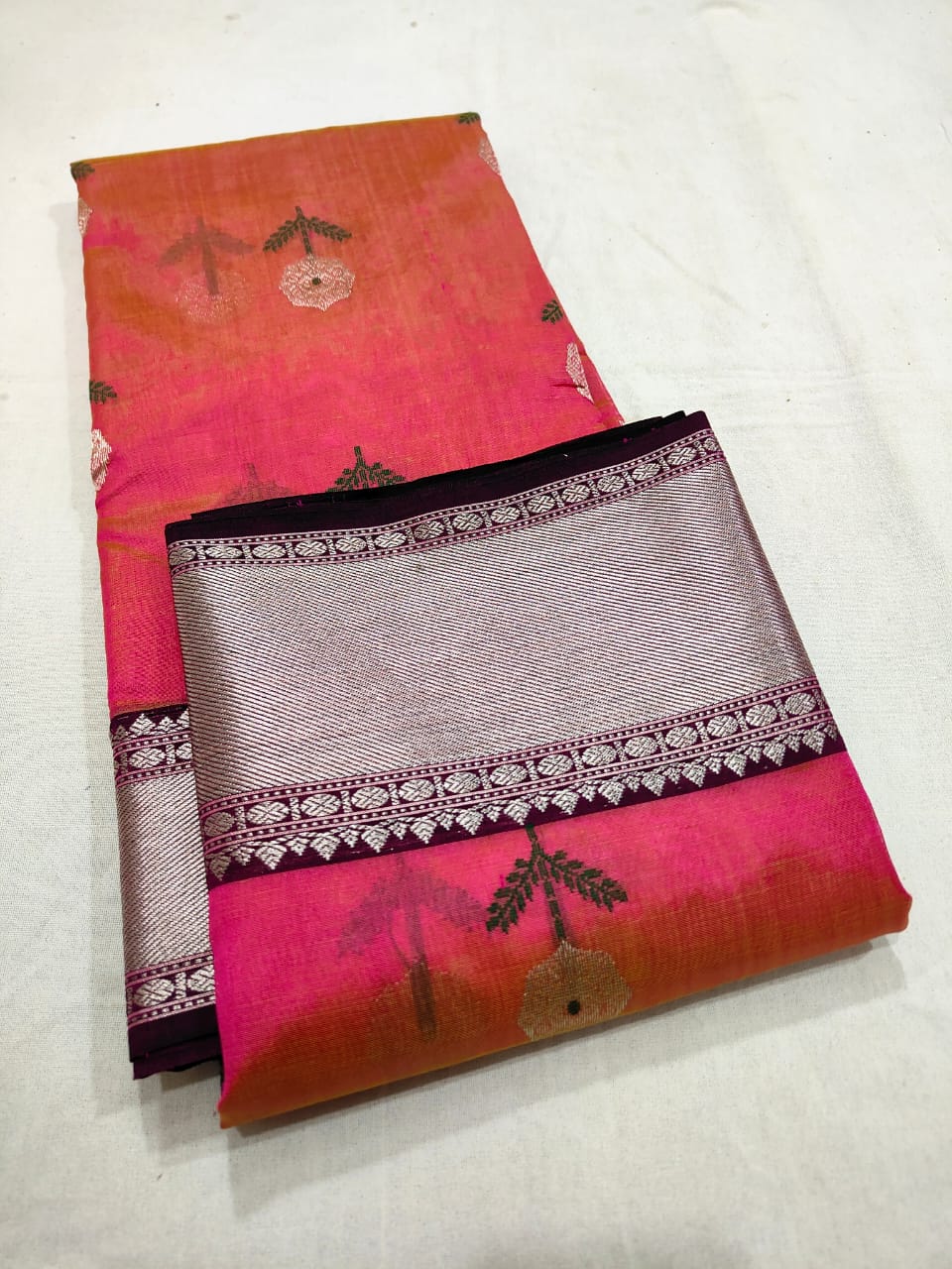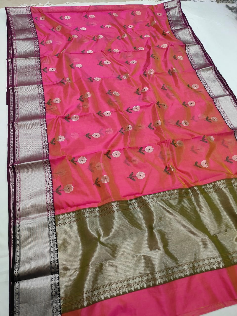 Dual Tone Pink Chanderi Handloom Pattu Silk Meenakari Saree