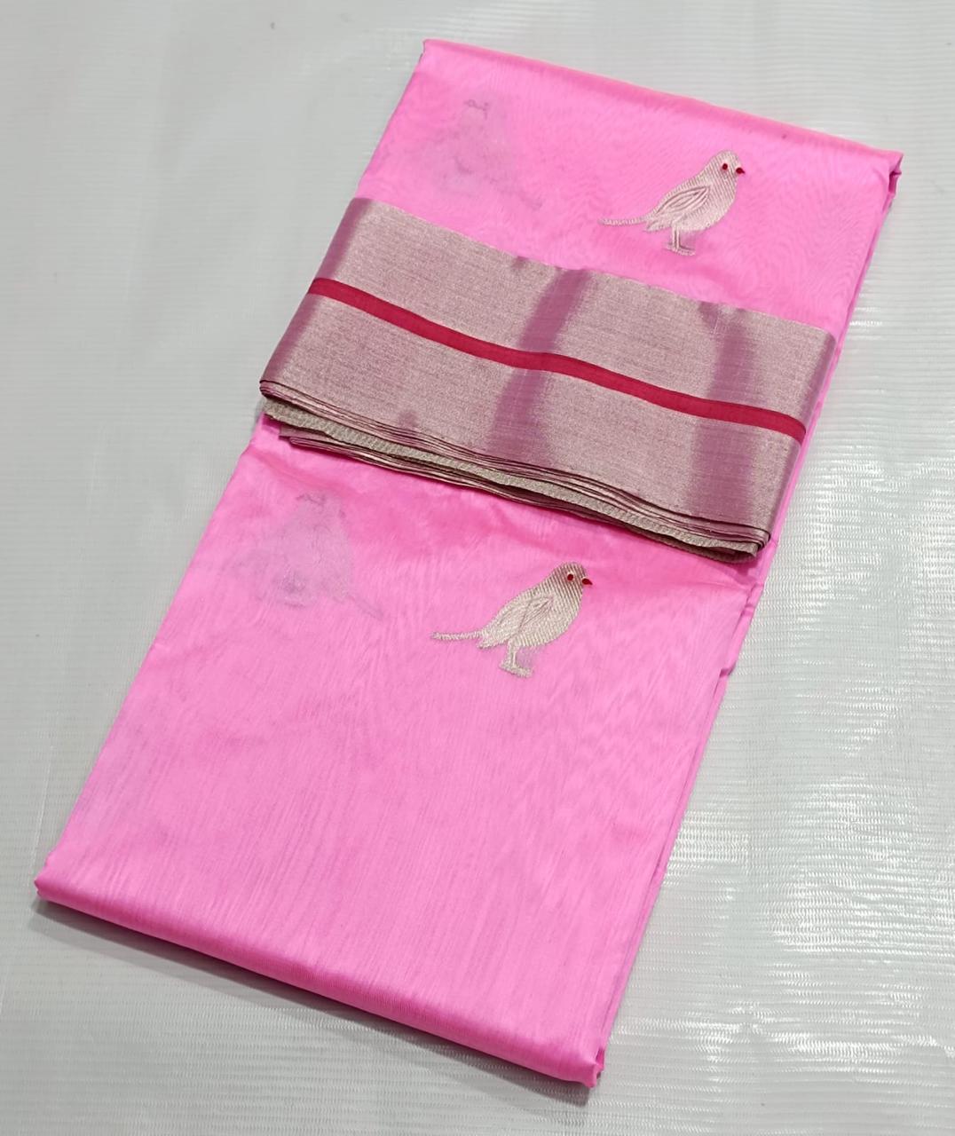 Peach Chanderi Handloom Pattu Silk Meenakari Saree