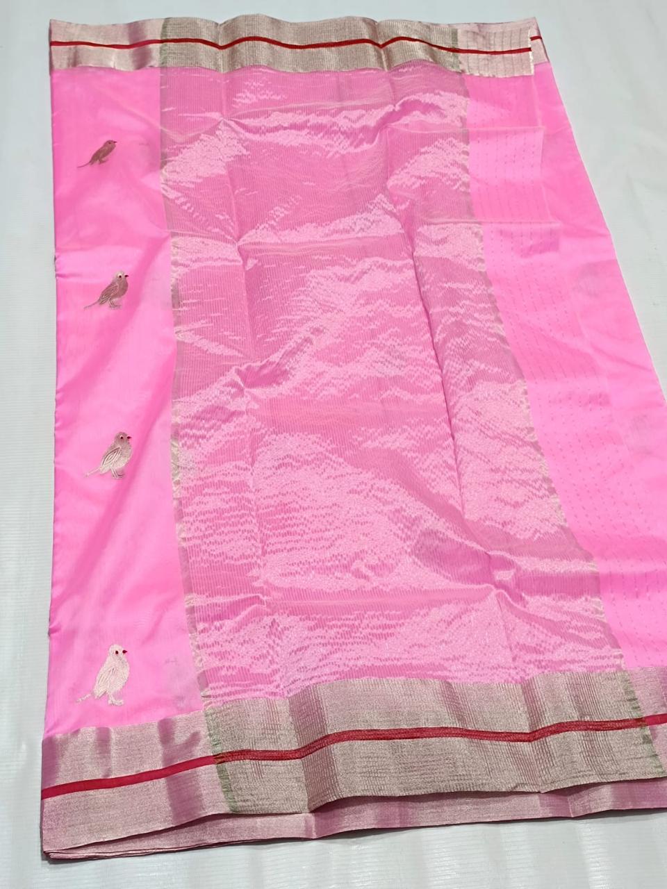Hot Pink Chanderi Handloom Pattu Silk Meenakari Saree