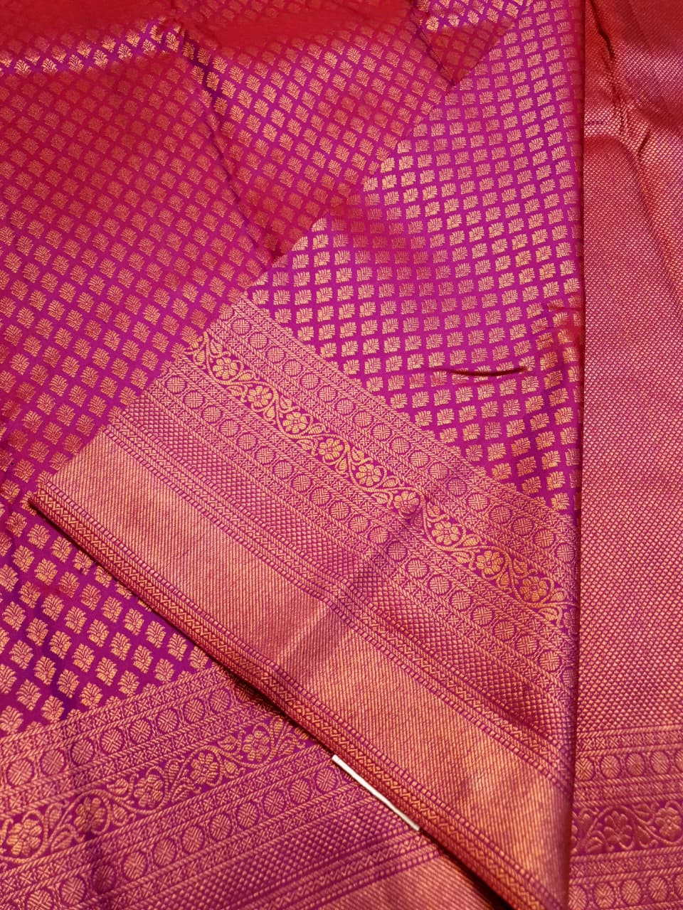 Hot Pink Kanchipuram Handloom 2G Gold Bridal Silk Saree