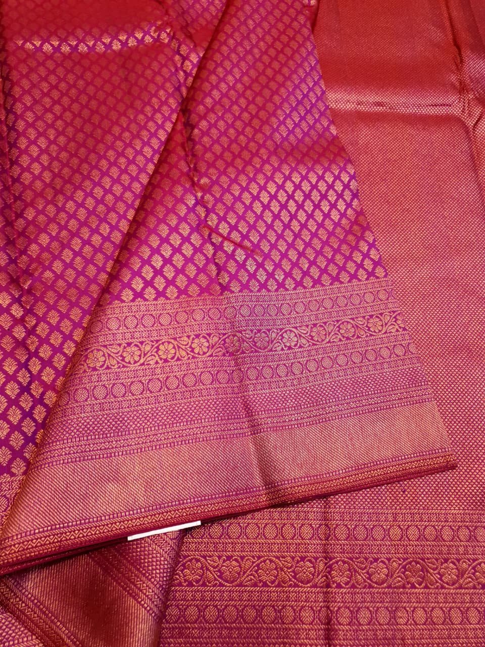 Dark Pink Kanchipuram Handloom 2G Gold Bridal Silk Saree