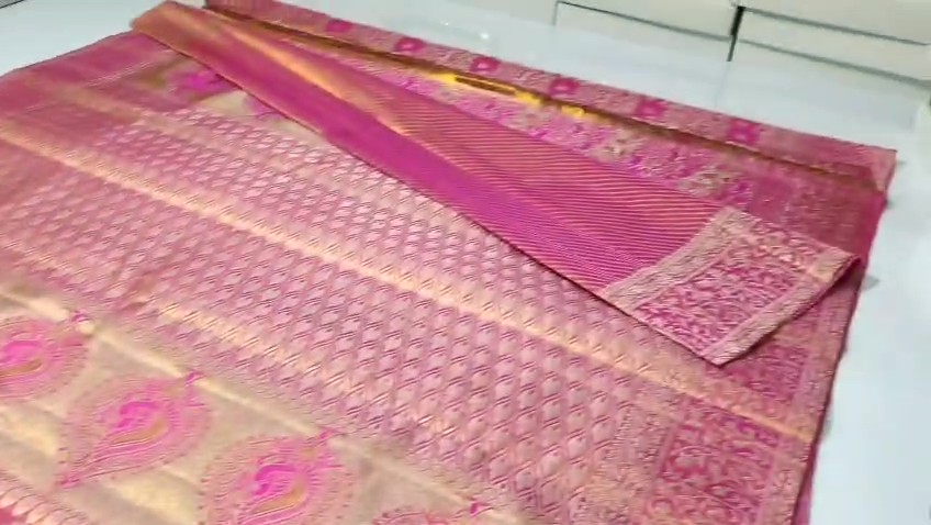 Pink Kanchipuram Handloom Tissue Brocade Silk Saree
