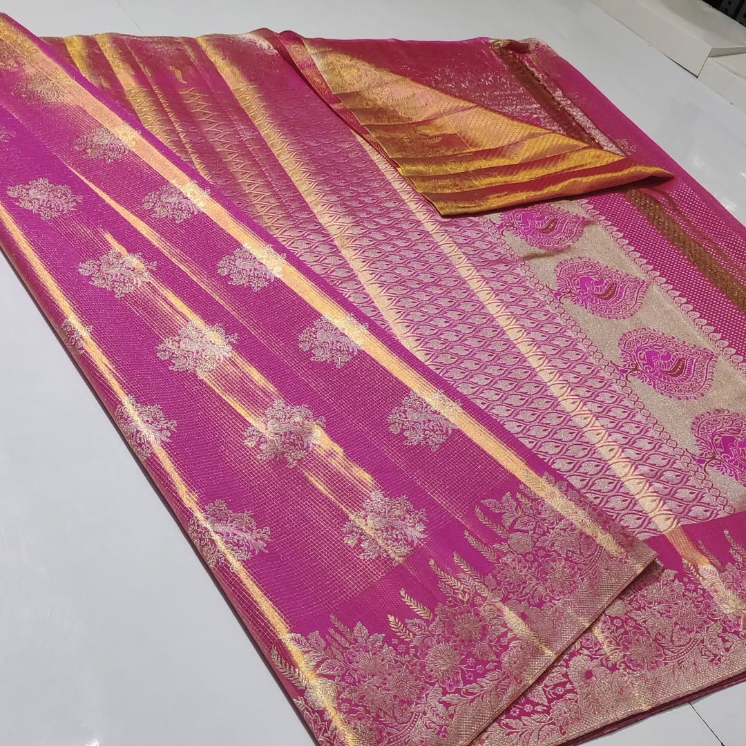 Pink Kanchipuram Handloom Tissue Brocade Silk Saree